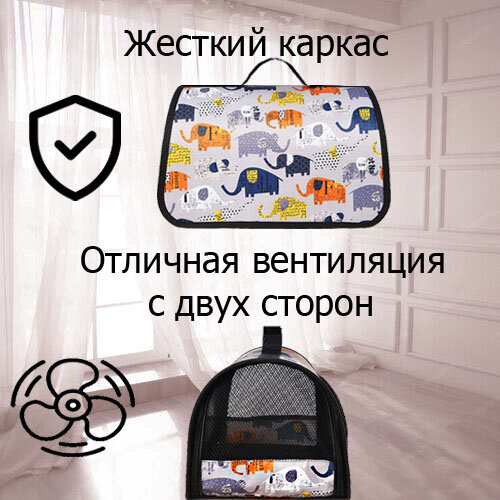 Переноска для кошек собак жесткая XL ZOLO до 10кг №2 40x25x25см для самолета авиаперевозок с рисунком «Веселые Слоники» интересное:
