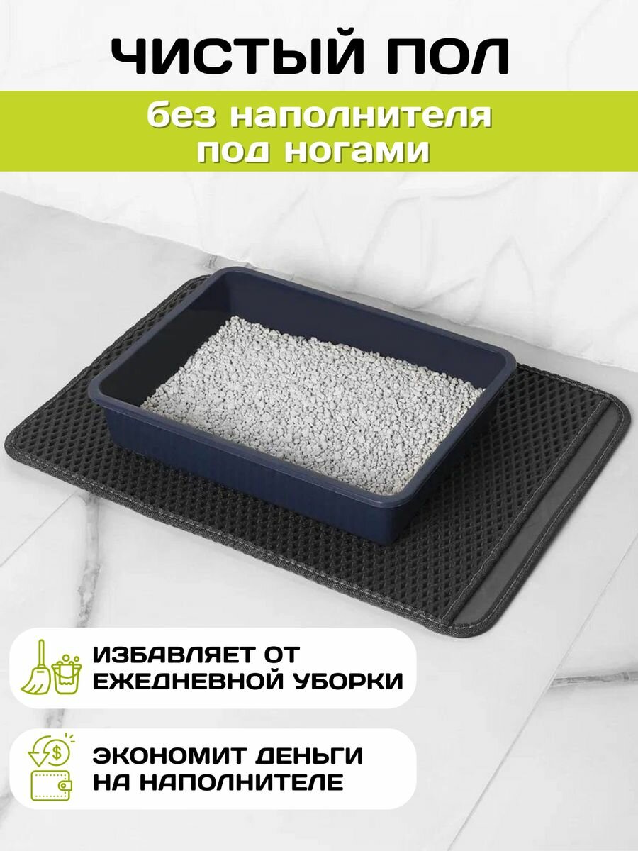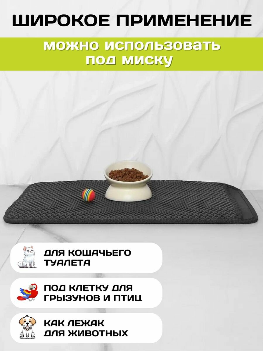 Двухслойный коврик для кошачьего туалета 64*46см, черный/ Коврик под лоток для кота, собаки
