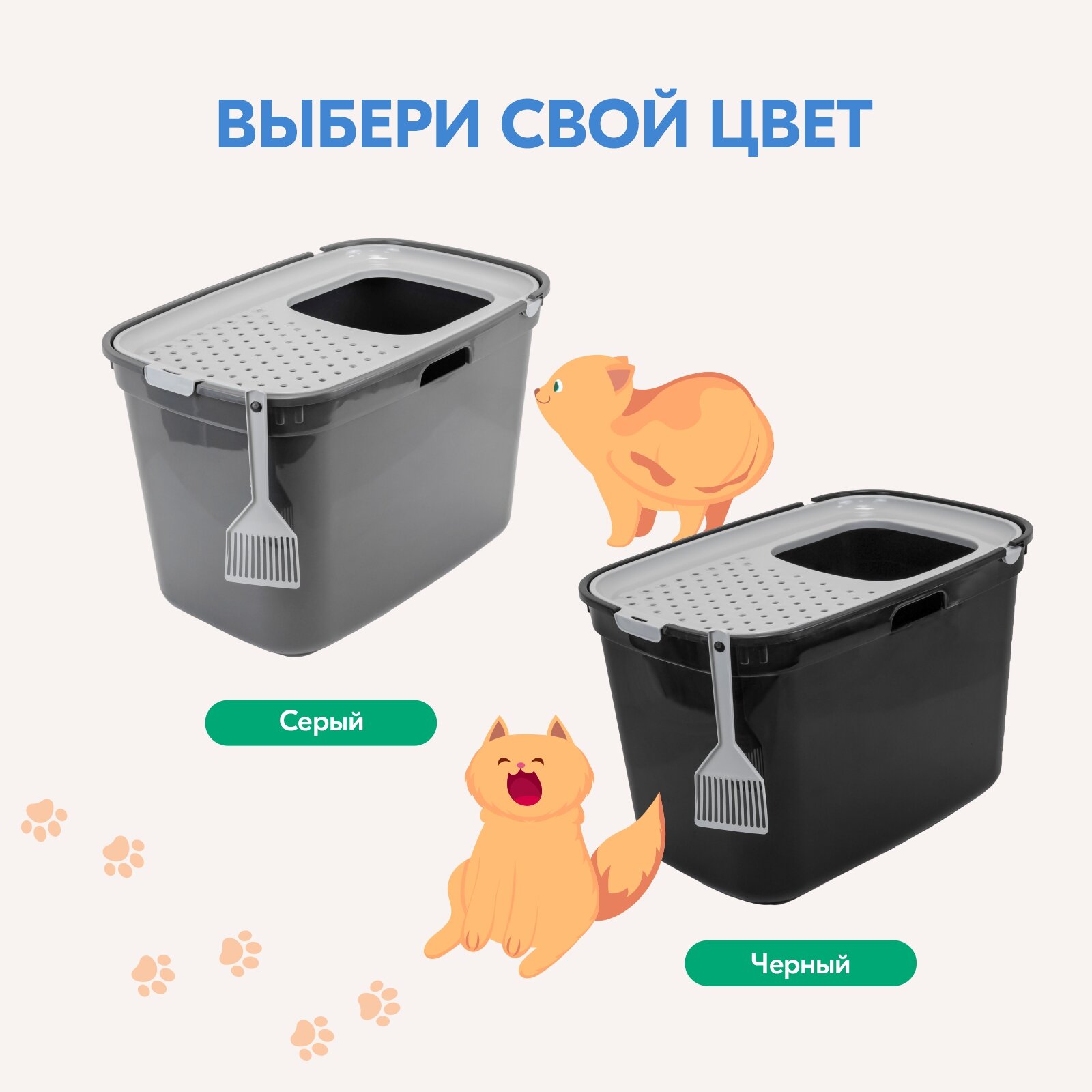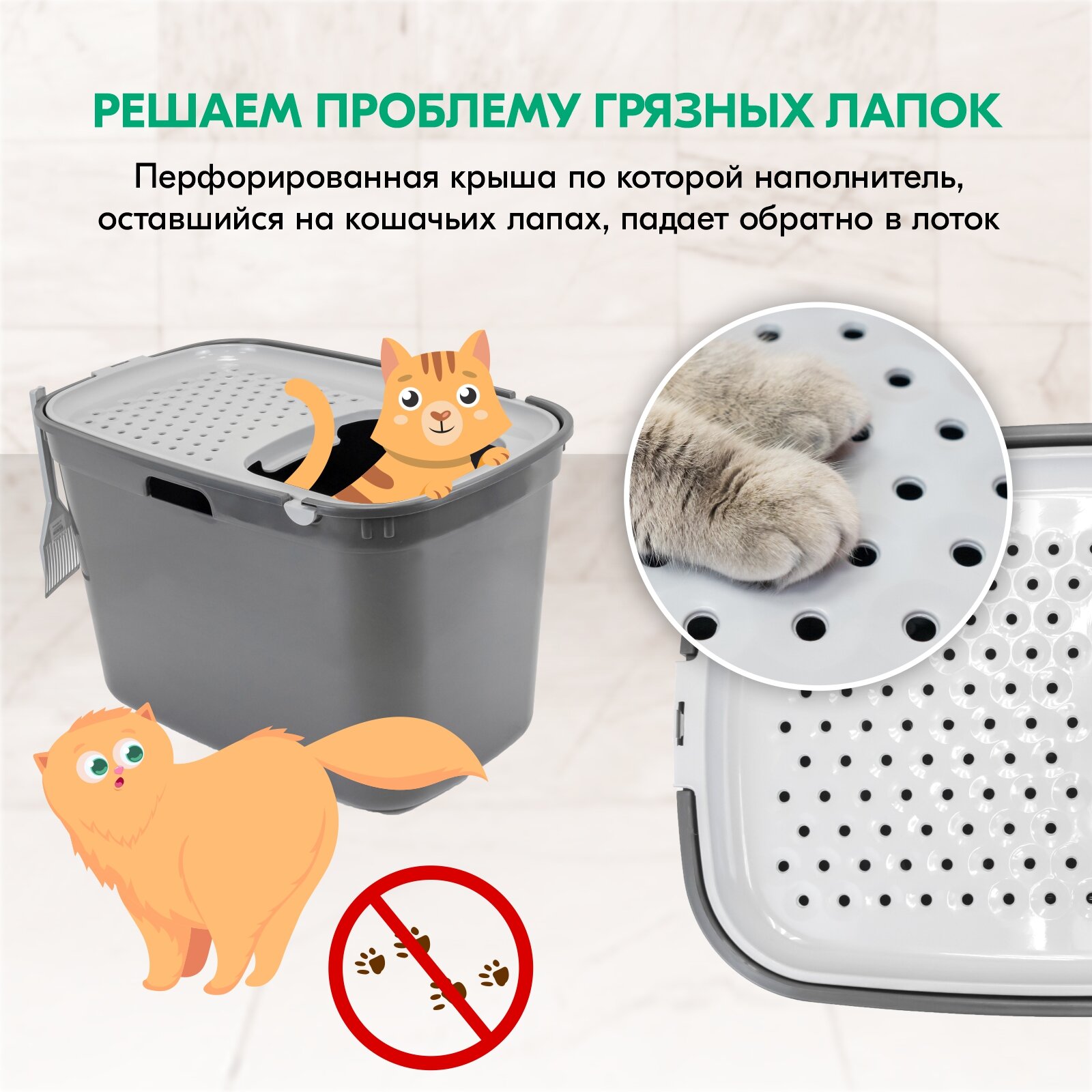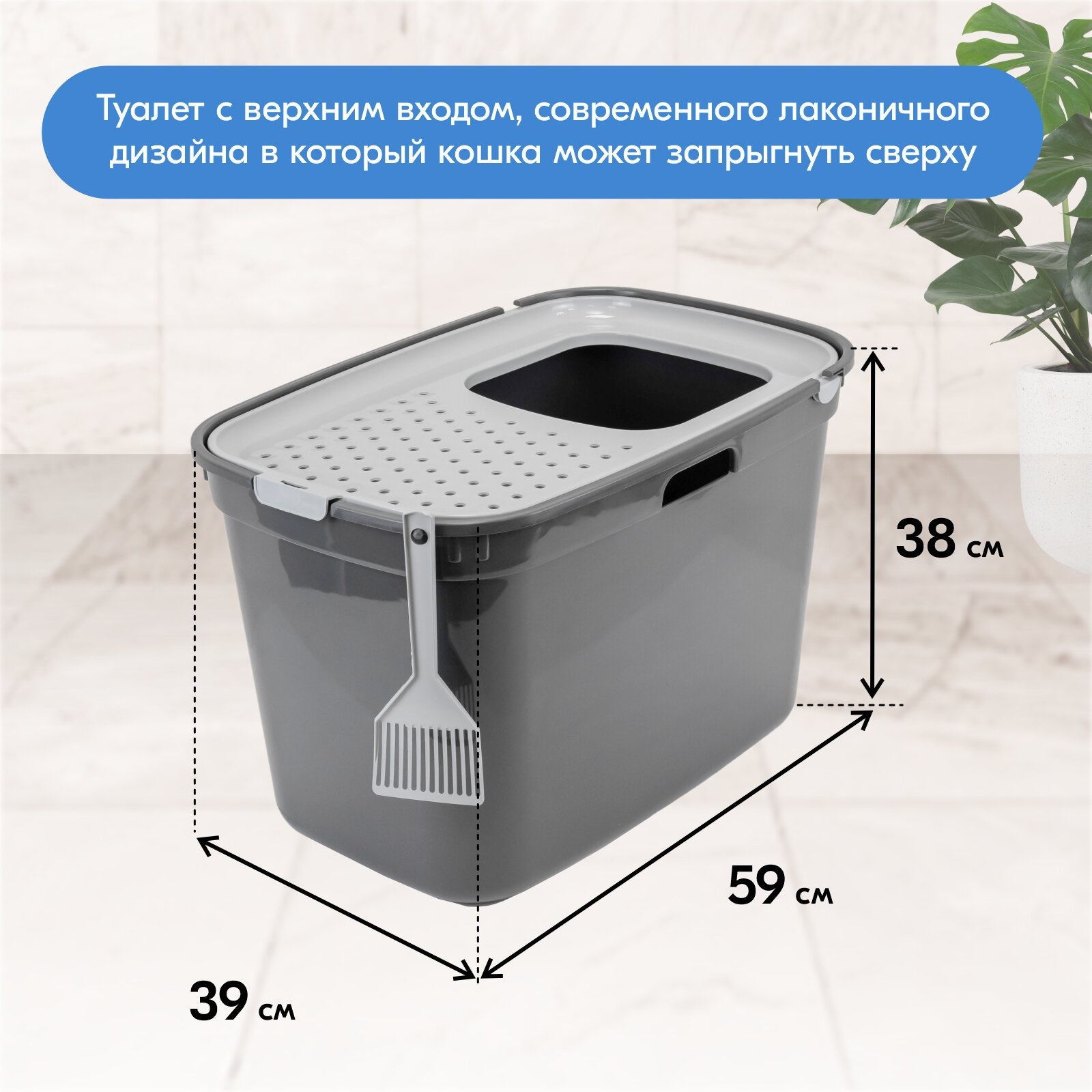 Туалет для кошек закрытый "PetTails" с верхним входом 59*39*38см (полипропилен) серый интересное: