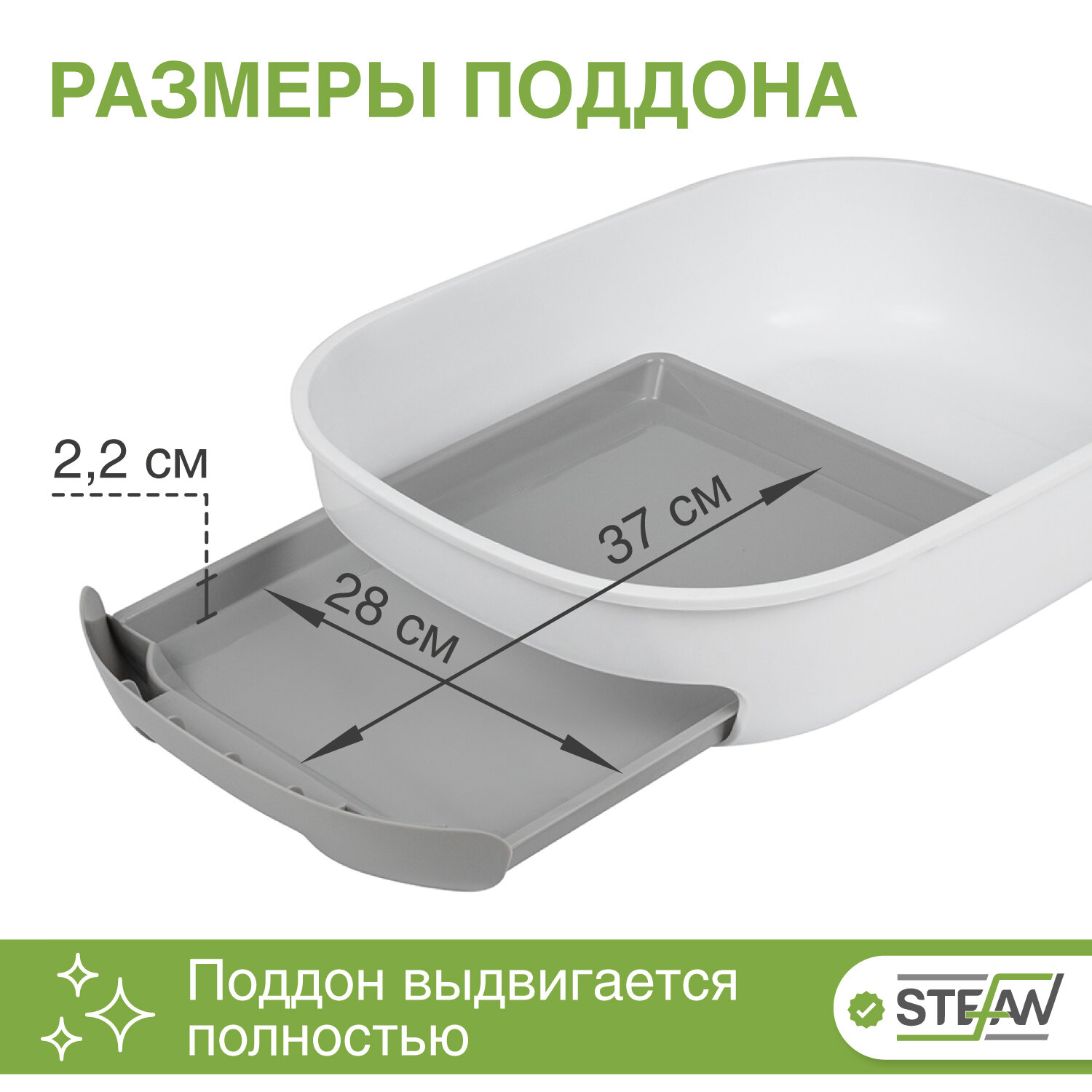 Купить Лоток для кошек системный STEFAN (Штефан) с высокими бортами, сеткой и выдвижным поддоном, большой (L) 51х40х21, серый, BP2911