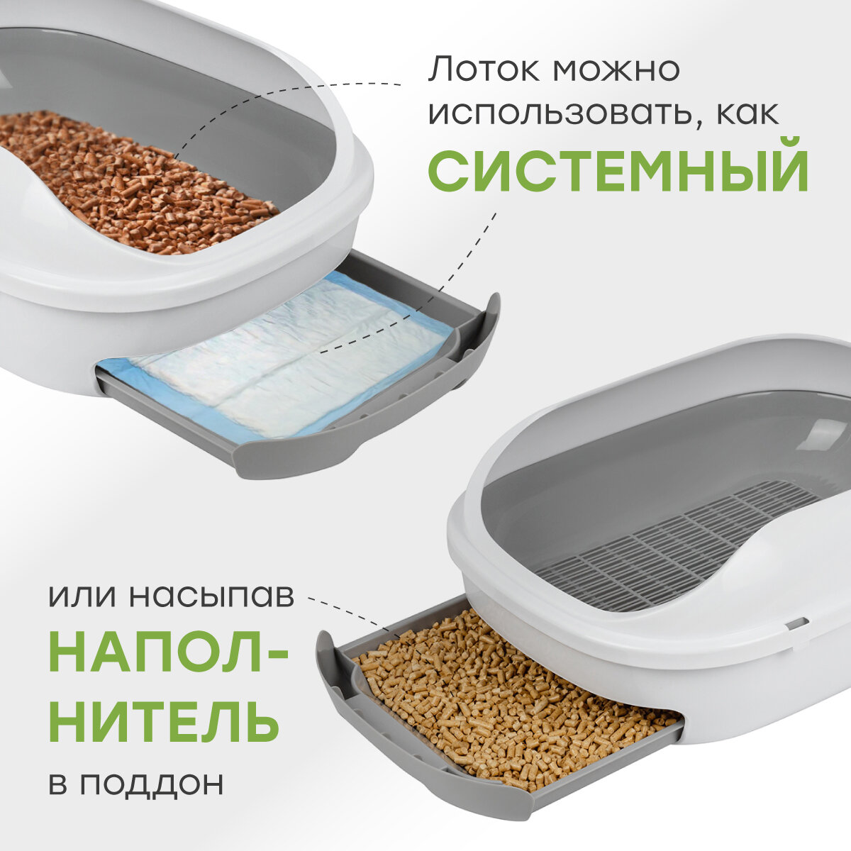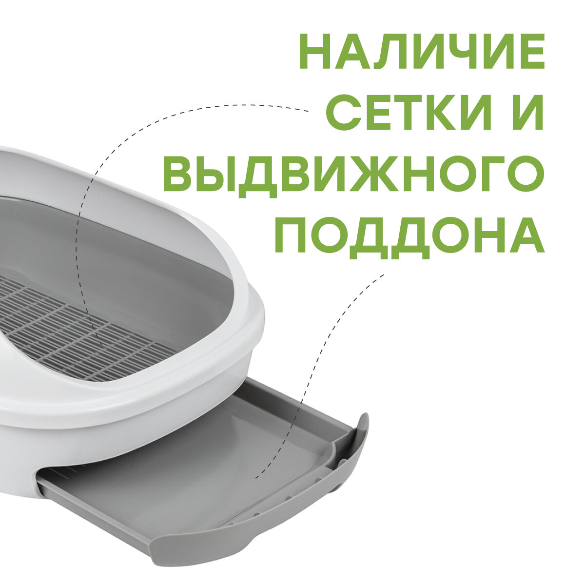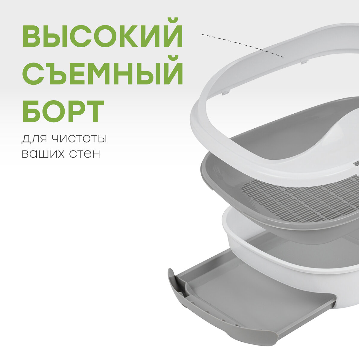 Лоток для кошек системный STEFAN (Штефан) с высокими бортами, сеткой и выдвижным поддоном, (L) 51х40х21, серый, BP2911