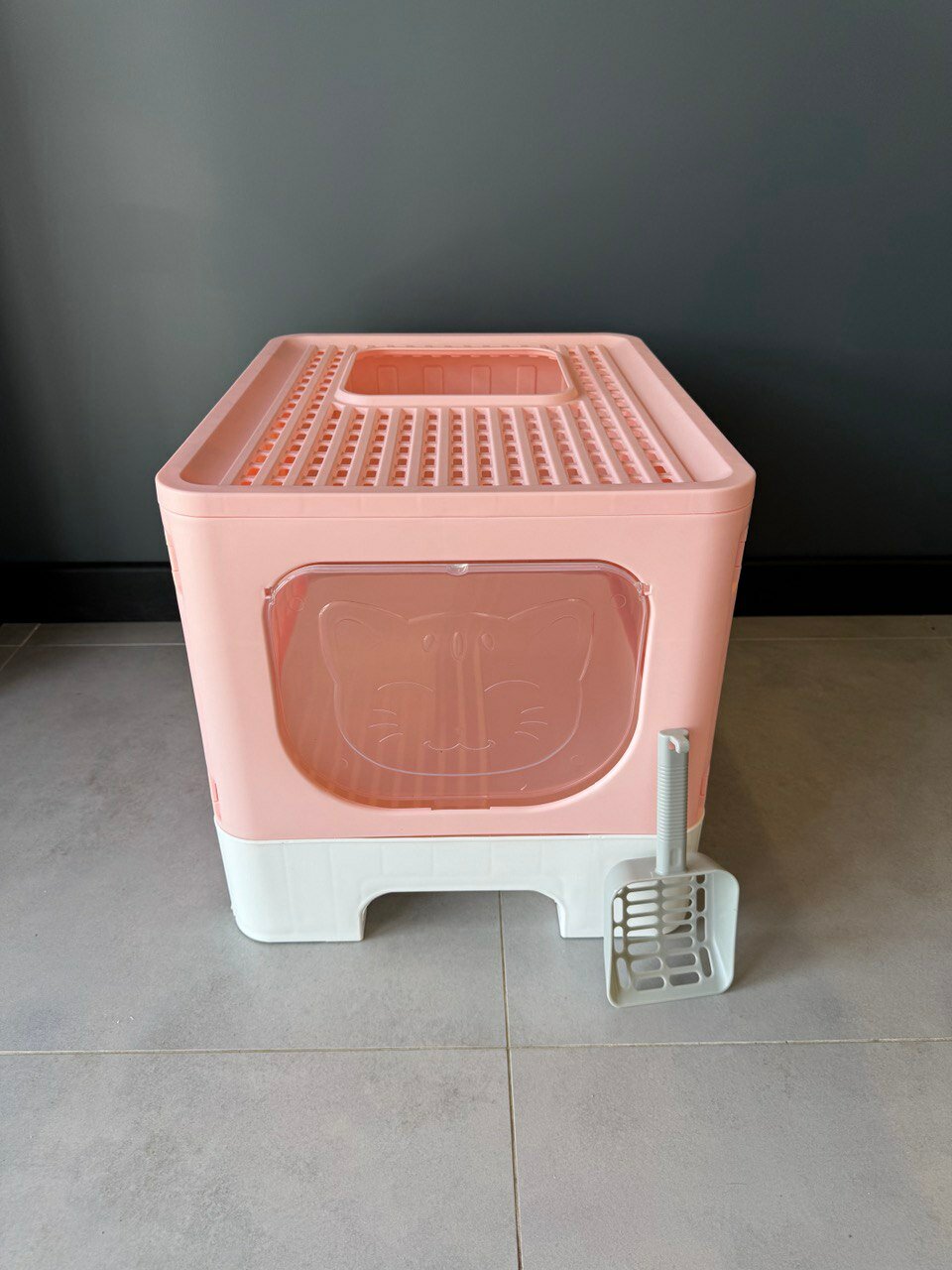 Закрытый лоток для кошек "Чистый Котик" поддон,2 выхода,розовый,пластик 52,1x38,5x40,9 см.
