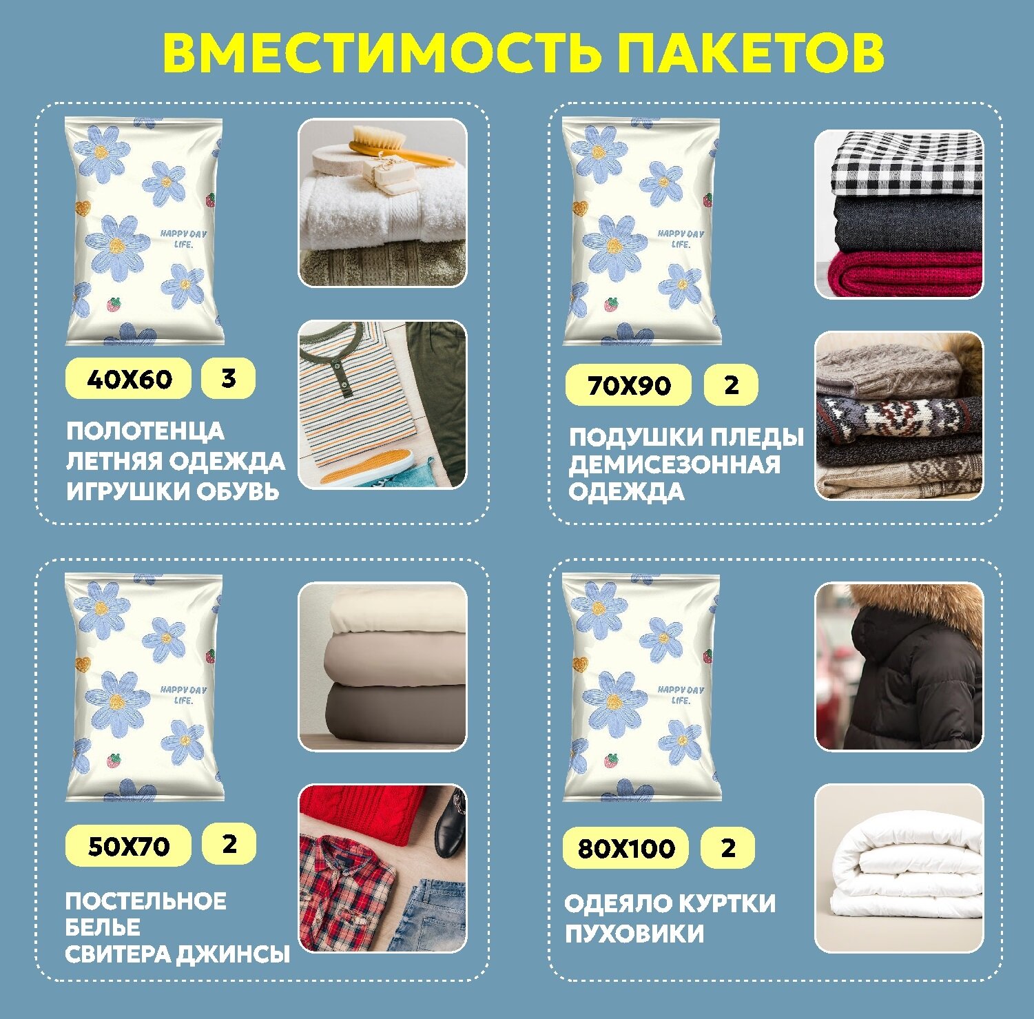 Вакуумные пакеты для одежды и хранения вещей 5 шт.