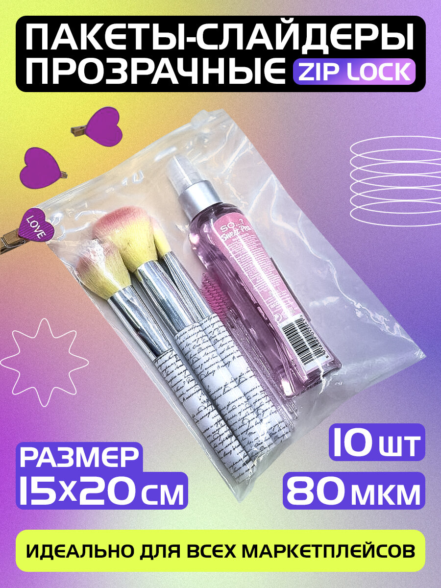 Пакеты слайдеры прозрачные с Zip lock бегунком 15х20 см для хранения вещей и продуктов. Комплект 10 штук. интересное: