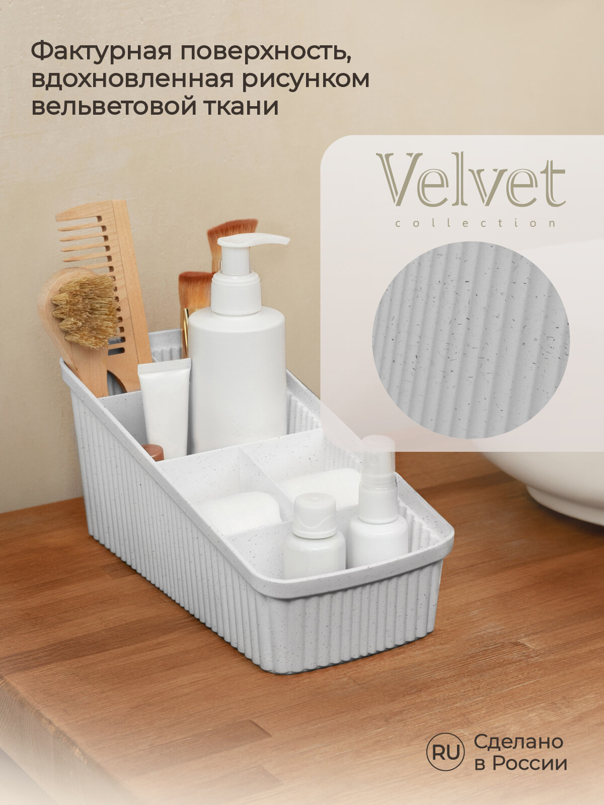 Купить Органайзер универсальный 240х117х106 мм VELVET Светло-серый флэк