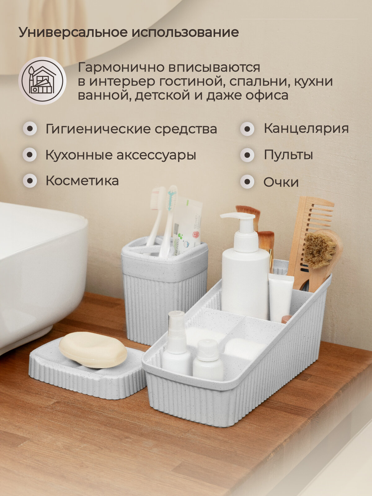 СохранитьОрганайзер универсальный 240х117х106 мм VELVET Светло-серый флэк интересное: