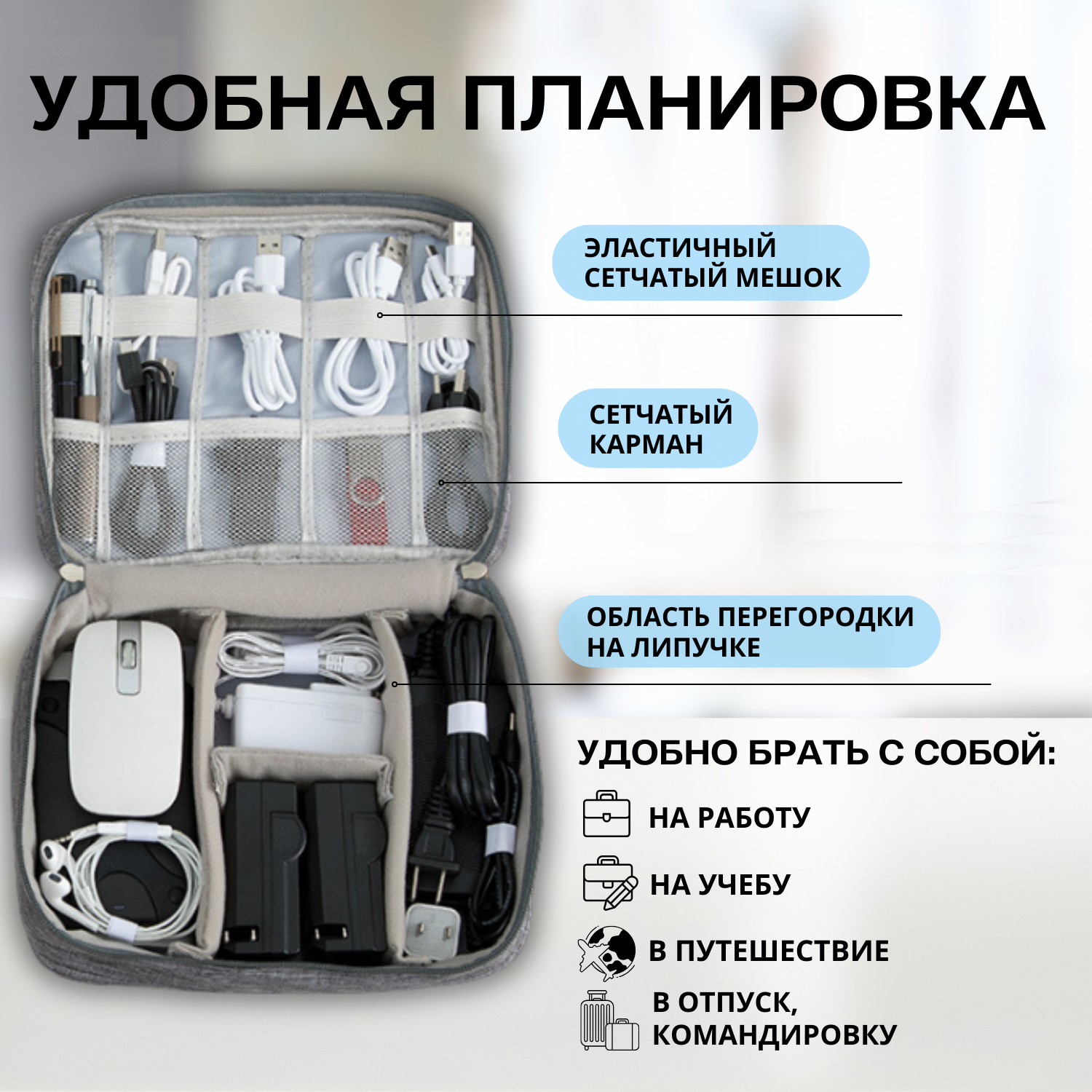 | Назначение | аксессуары / в чемодан / для хранения / документы |