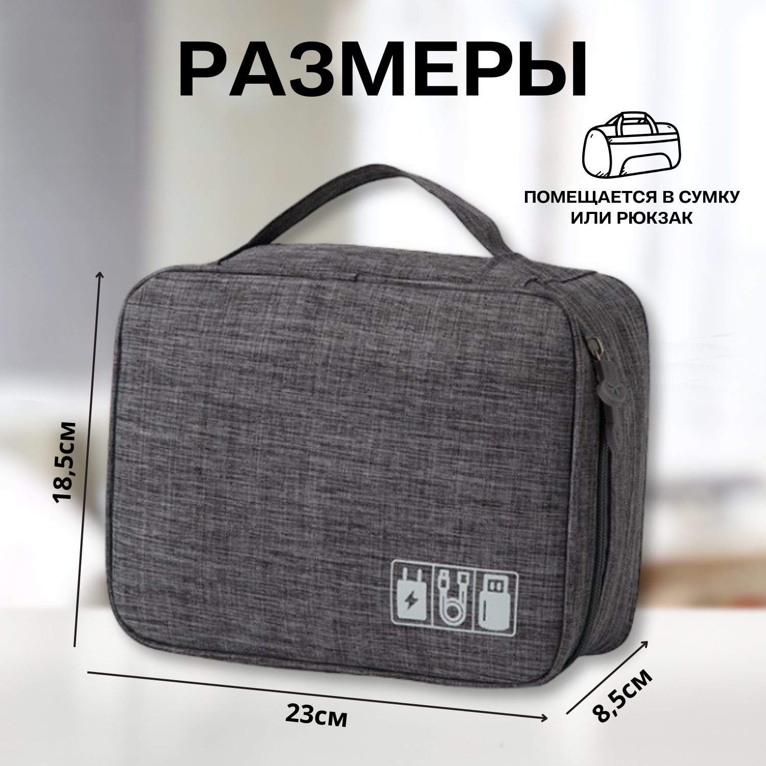 | Особенности | на молнии / подвесной / ручки для переноски / с разделителями |