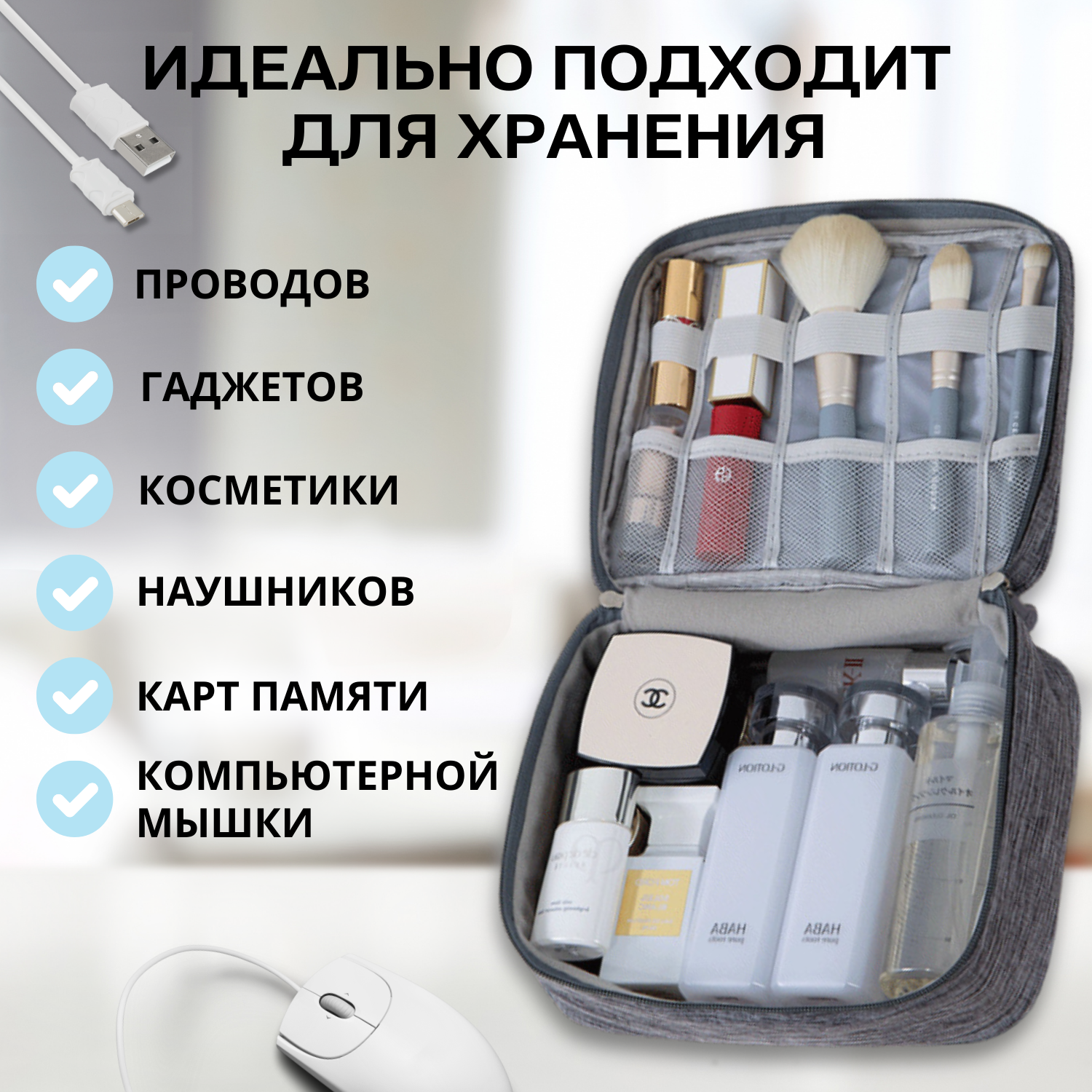 Органайзер для хранения проводов и зарядок, цвет серый, LugHome интересное: