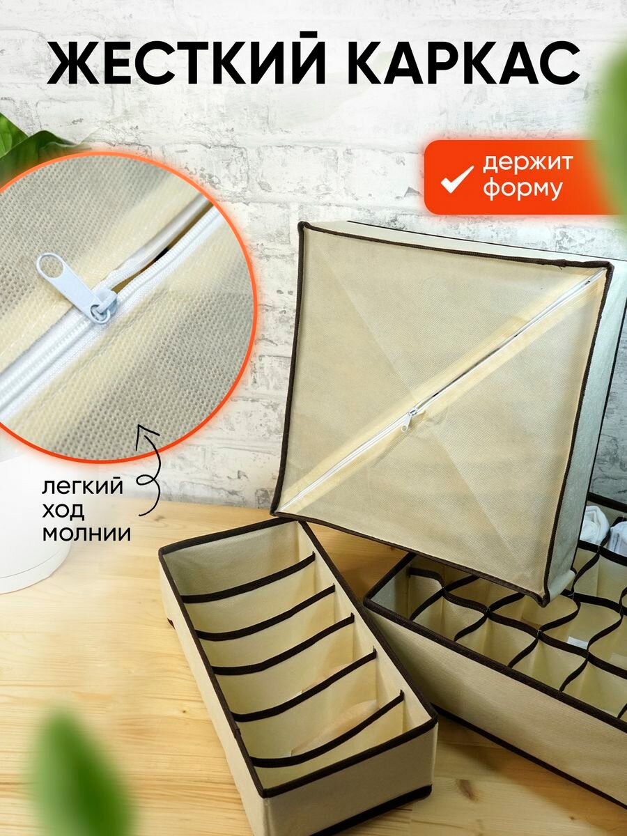 СохранитьОрганайзер для хранения вещей, нижнего белья, бюстгалтеров и носков в шкафу, складной, с разделителями, набор 4 шт, бежевый интересное: