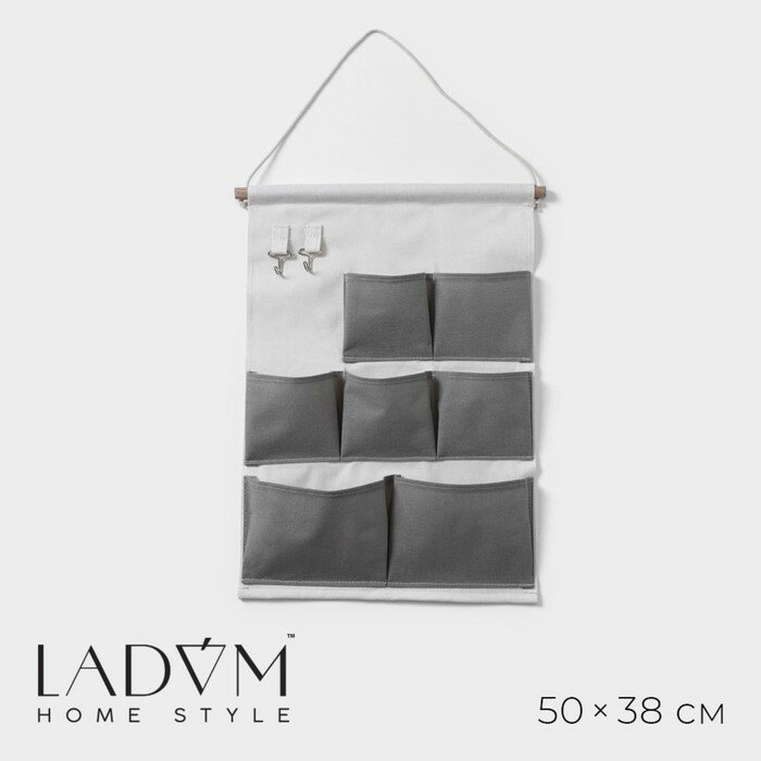 Купить Органайзер LaDо́m, подвесной с карманами, 7 отделений, 50х38 см, цвет серый