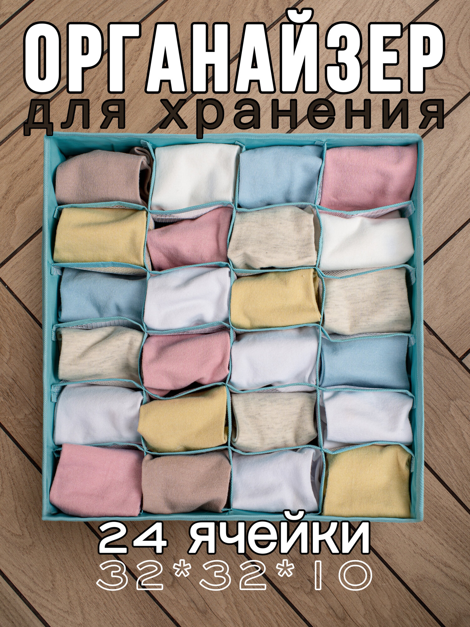 СохранитьОрганайзер для хранения носков, нижнего белья (Голубой 24 ячейки) интересное: