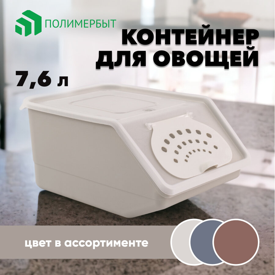 Контейнер для хранения овощей, 7.6л, POLIMERBYT, пластик, цвет белый/оливковый интересное: