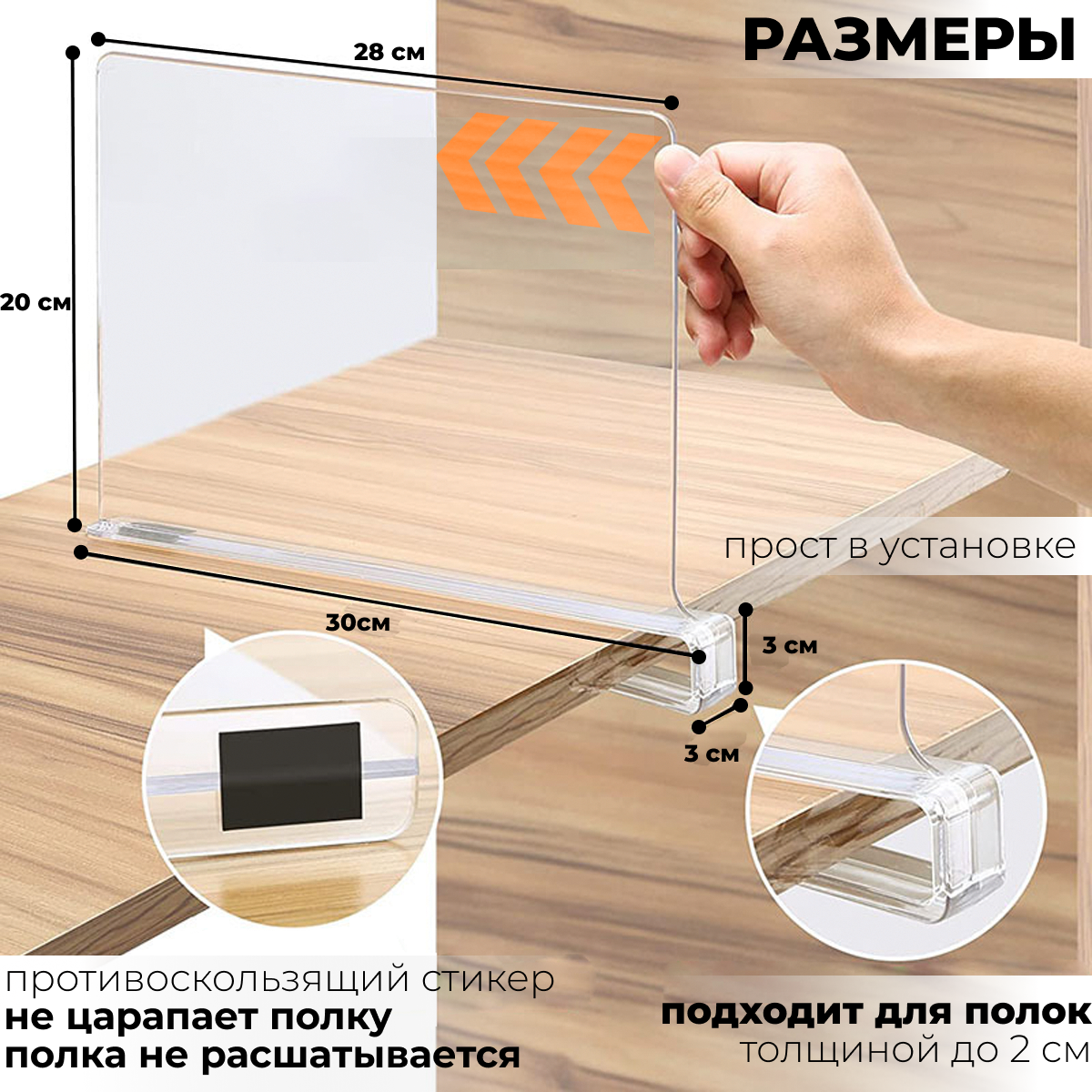 Разделители полок - 2 штуки, прозрачные, акриловые, 20х30см, для шкафа, кухни и гардеробной интересное: