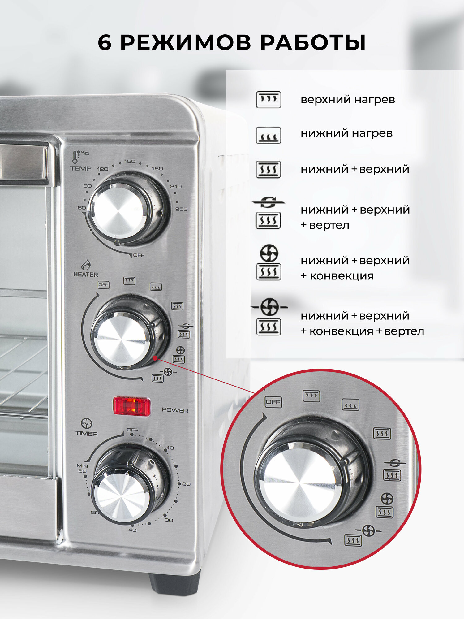 Мини-печь GURMAN GR-HL630, 63л, 2200Вт.