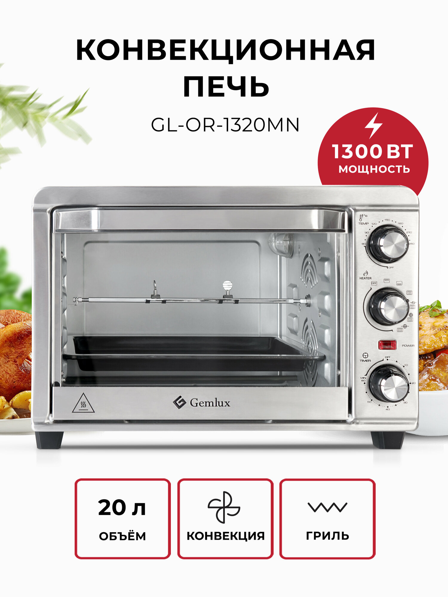 Мини-печь с конвекцией и грилем GEMLUX GL-OR-1320MN, 20 л, 1300 Вт, минипечь, электропечь для выпечки, печка, духовка электрическая настольная, электродуховка, духовой шкаф, бытовая техника для кухни