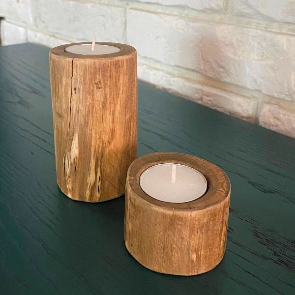 Набор из двух напольных и настольных подсвечников из дерева "Сосна" интересное:
