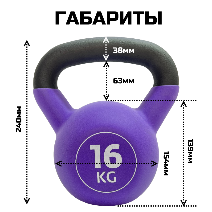 | Комплектация | Чугунная обрезиненная гиря 16кг - 1шт |