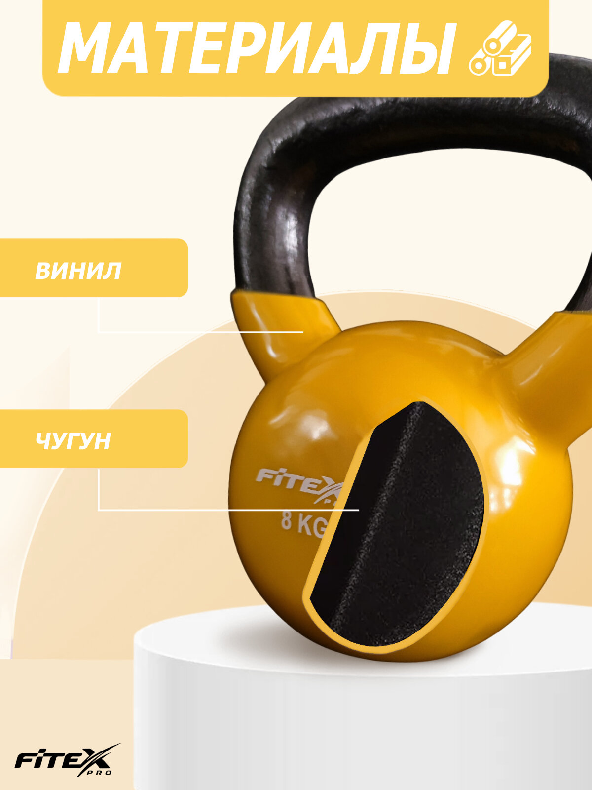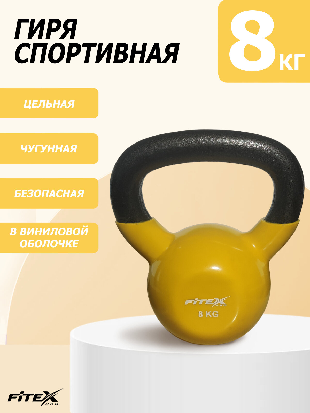 Гиря 8 кг спортивная для фитнеса чугунная в виниловой оболочке цельная FTX2201-8 интересное: