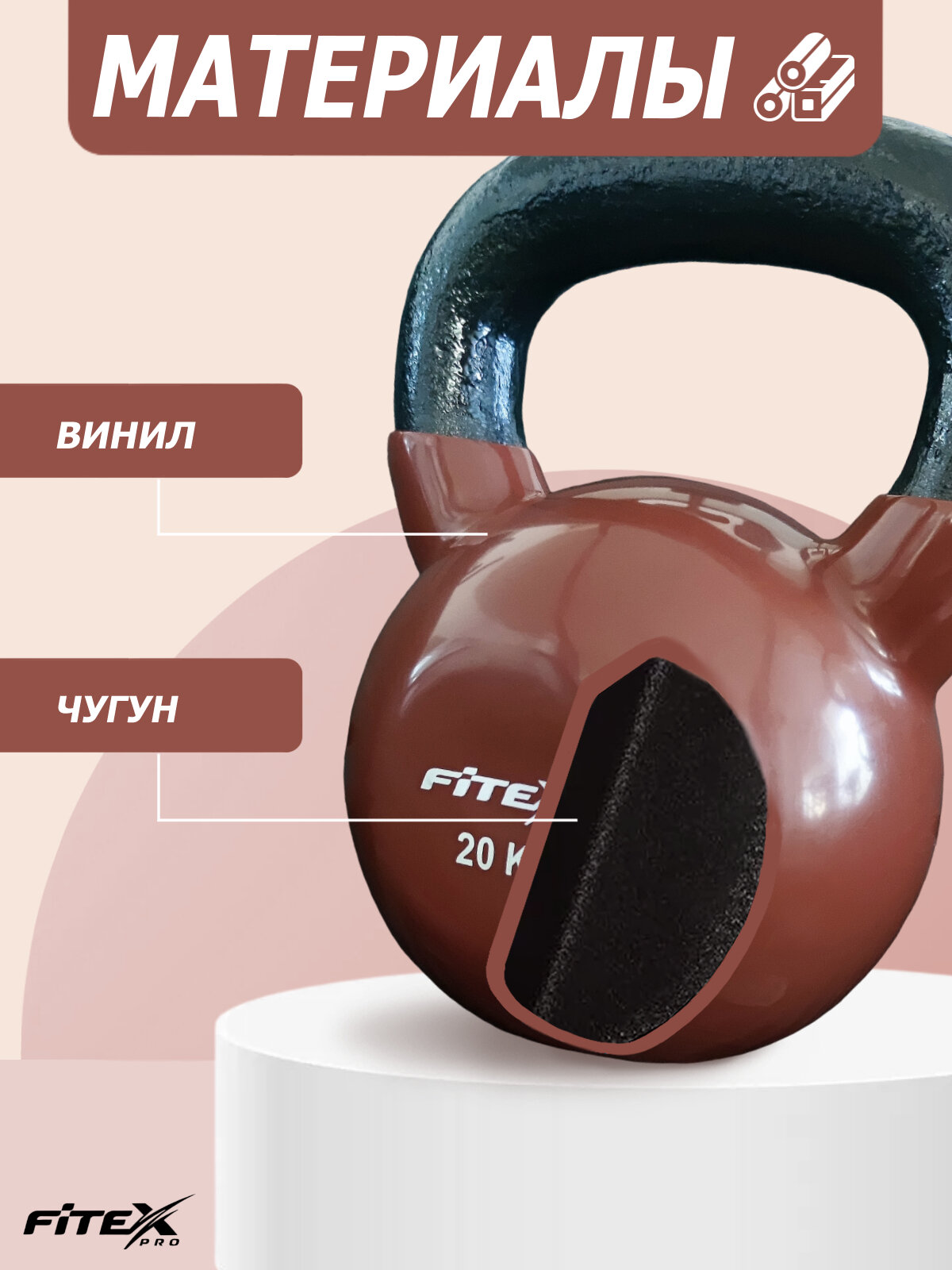 Гиря 20 кг спортивная чугунная в виниловой оболочке цельная FTX2201-20 интересное: