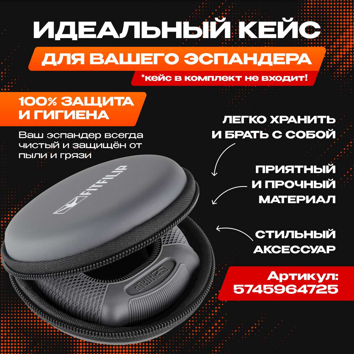 Кейс FITFILIP для эспандеров, на молнии, графитовый, 11x11 см