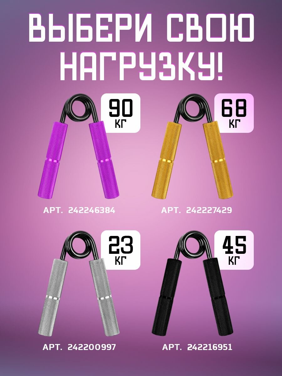 Эспандер кистевой Willman пружинный 90 кг, для предплечья, материал изделия алюминий, универсальный, фиолетовый интересное: