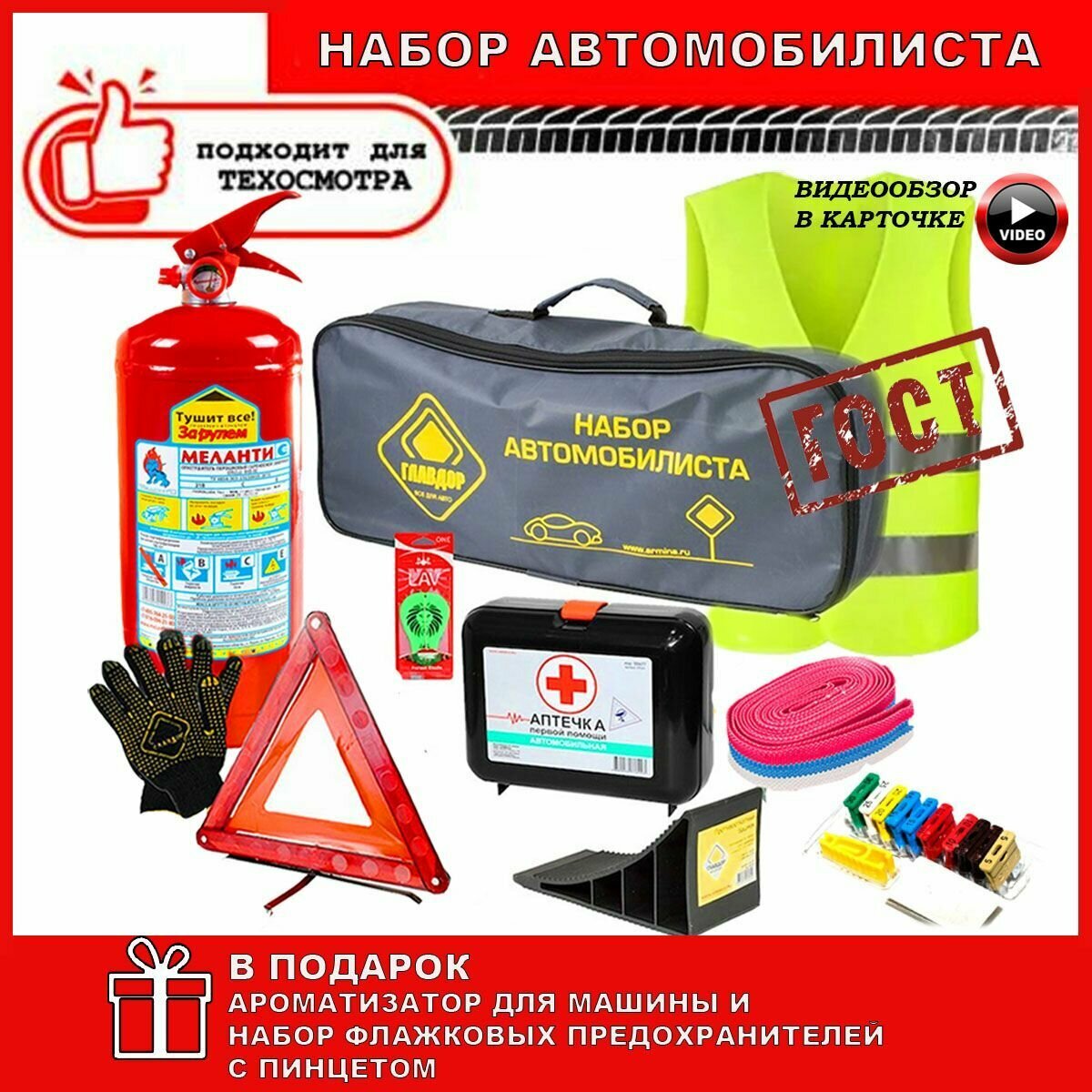 Аварийный дорожный набор автомобилиста VIP ГОСТ 2023 г.- в подарок ароматизатор и набор предохранителей интересное: