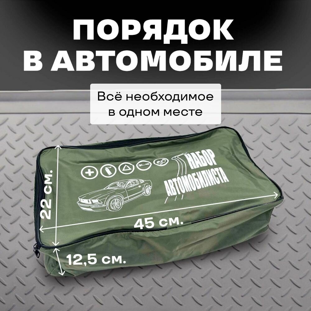 Сумка-органайзер "Набор автомобилиста" для хранения инструментов в багажник авто, хаки интересное: