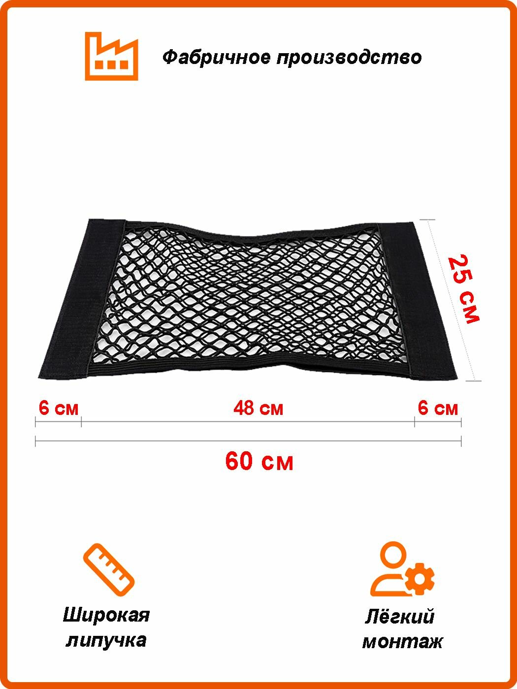 Сетка органайзер на липучке и липкой ленте 25х60 см в багажник автомобиля интересное: