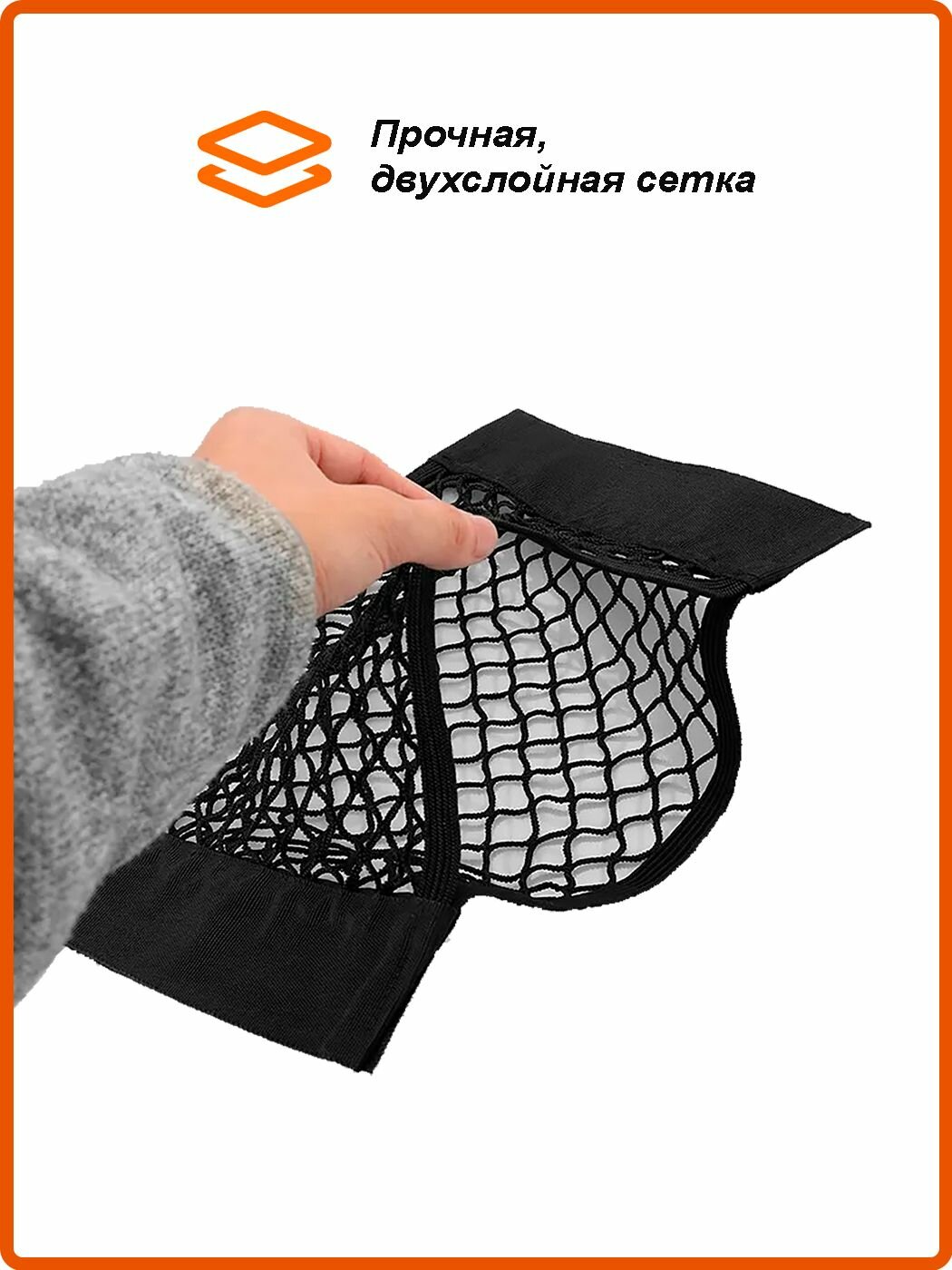 Сетка органайзер на липучке и липкой ленте 25х70 см в багажник автомобиля интересное: