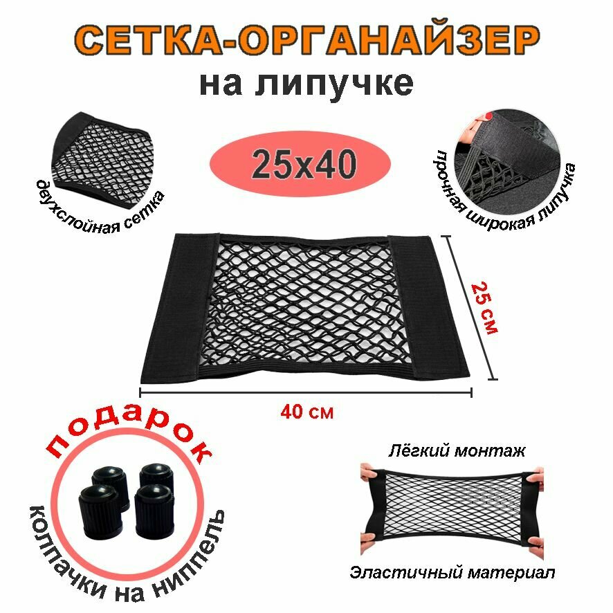 | Комплектация | Сетка-органайзер для автомобиля 1 шт. Колпачки на ниппель - 4 шт. |