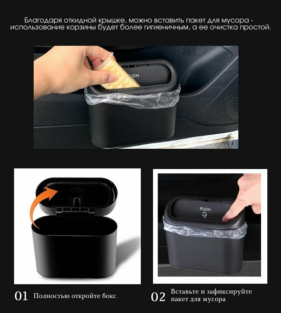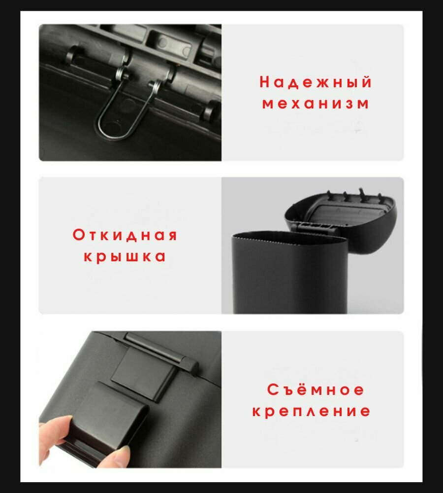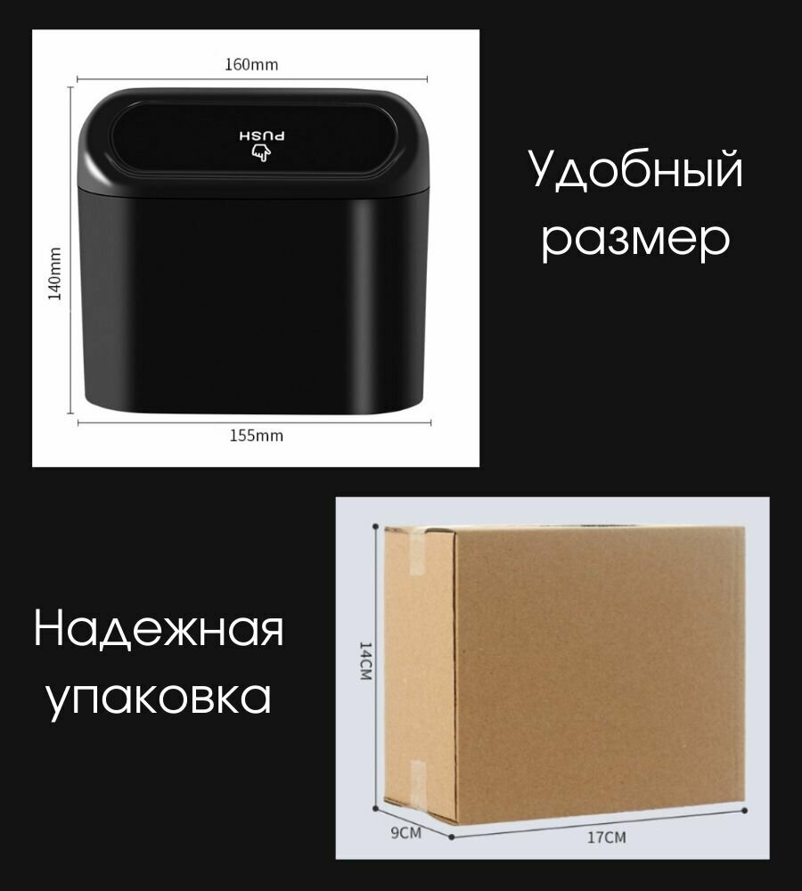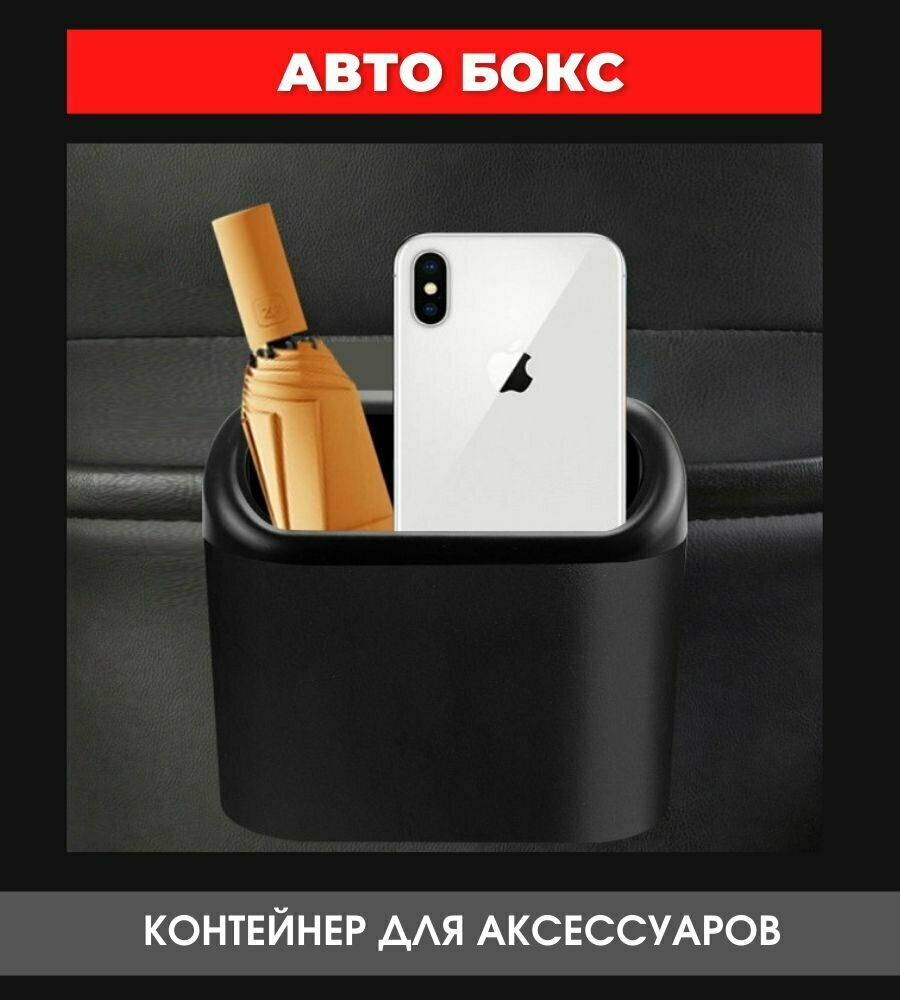 Авто бокс урна /Good Ideas/ аксессуар для хранения в салон автомобиля / органайзер 160*140мм черный пластик, 1 шт интересное: