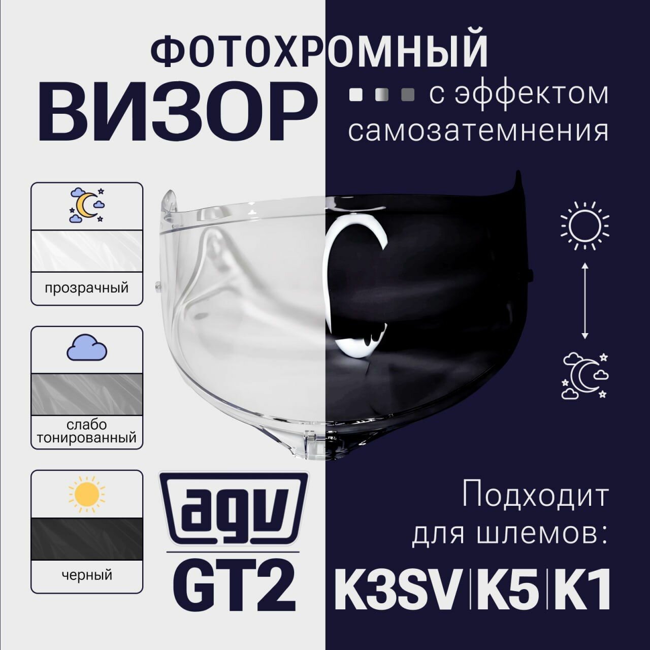 Купить Визор к AGV GT2 к K1 / K3SV / K5 Фотохром Прозрачный Черный