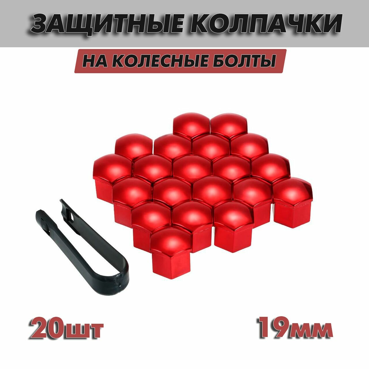 Купить Защитные колпачки на колесные болты и гайки красные, 19мм, 20шт, съемник в комплекте
