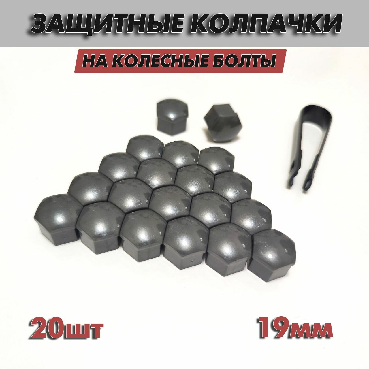 Купить Защитные колпачки на колесные болты и гайки серые, 19мм, 20шт, съемник в комплекте