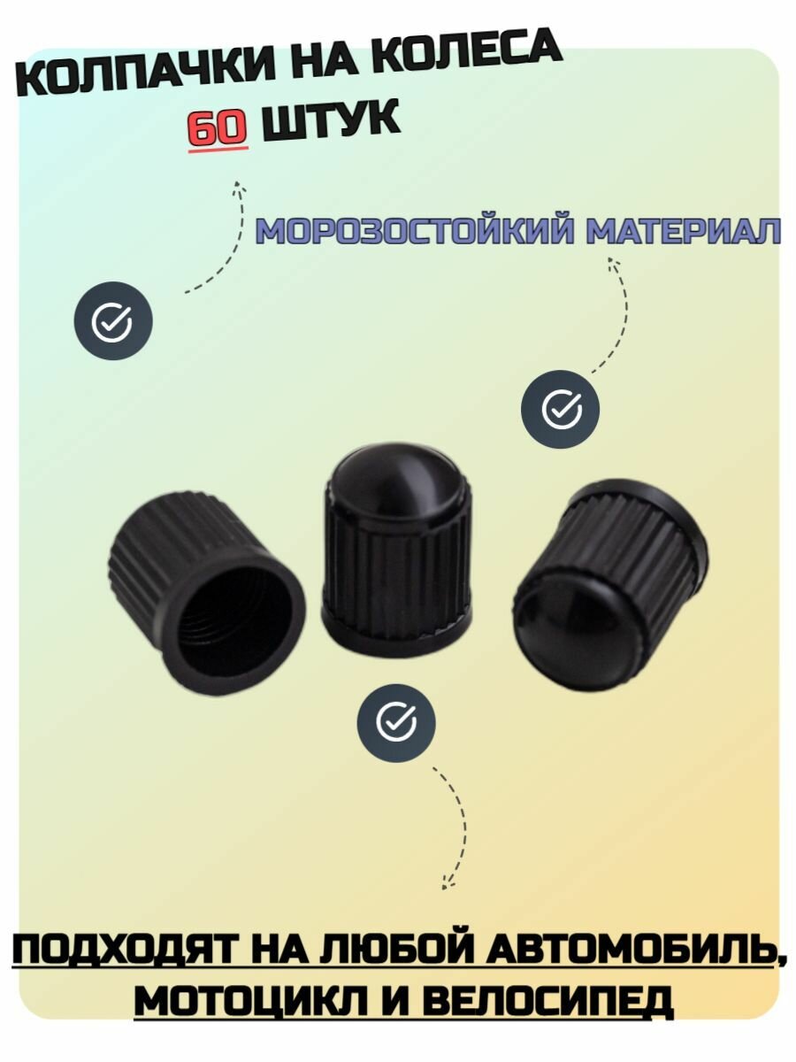 Колпачки на шинный вентиль, черные, пластик (60 шт.)