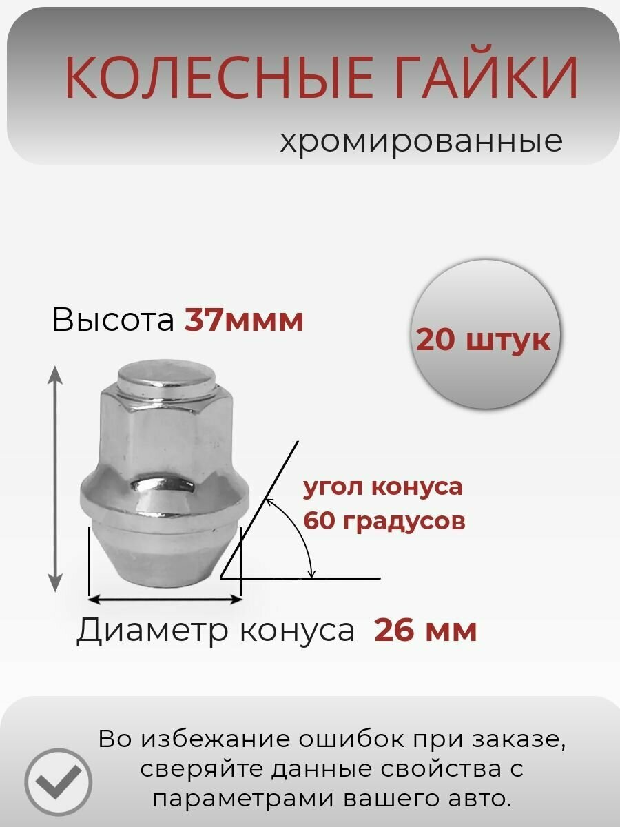 Гайка колёсная закрытая М14x2, конус, высота 35, ключ 19, хром