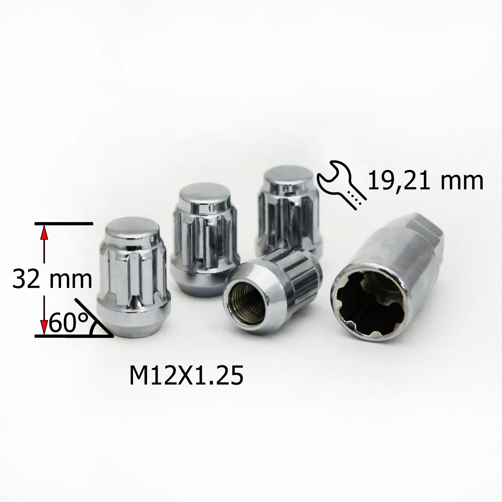 Купить Комплект секретных гаек М12x1,25 высота 32мм Конус, закрытая, 8 лучей, 1 ключ