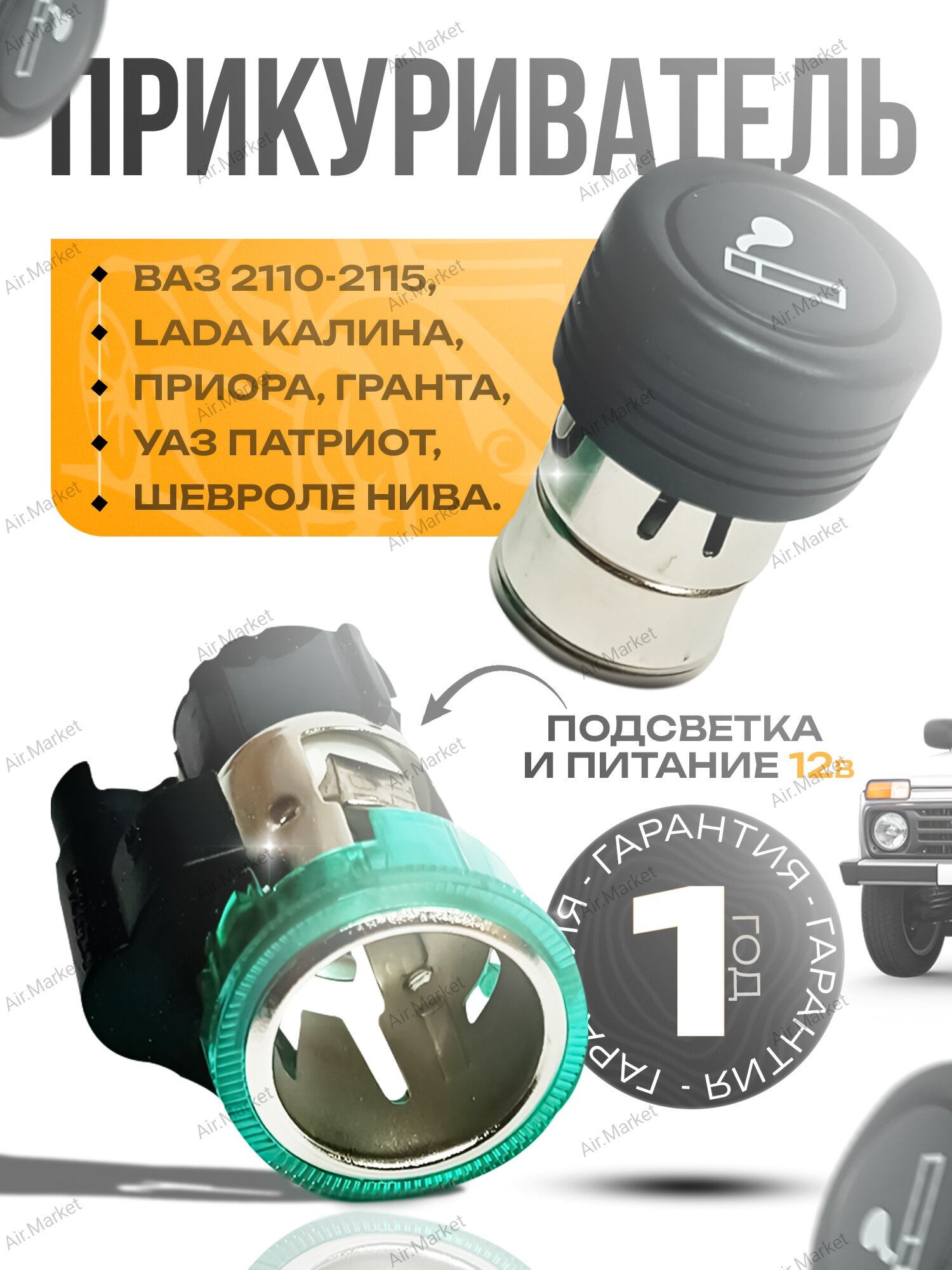 Прикуриватель в машину в сборе с гнездом ВАЗ Лада 12 вольт интересное: