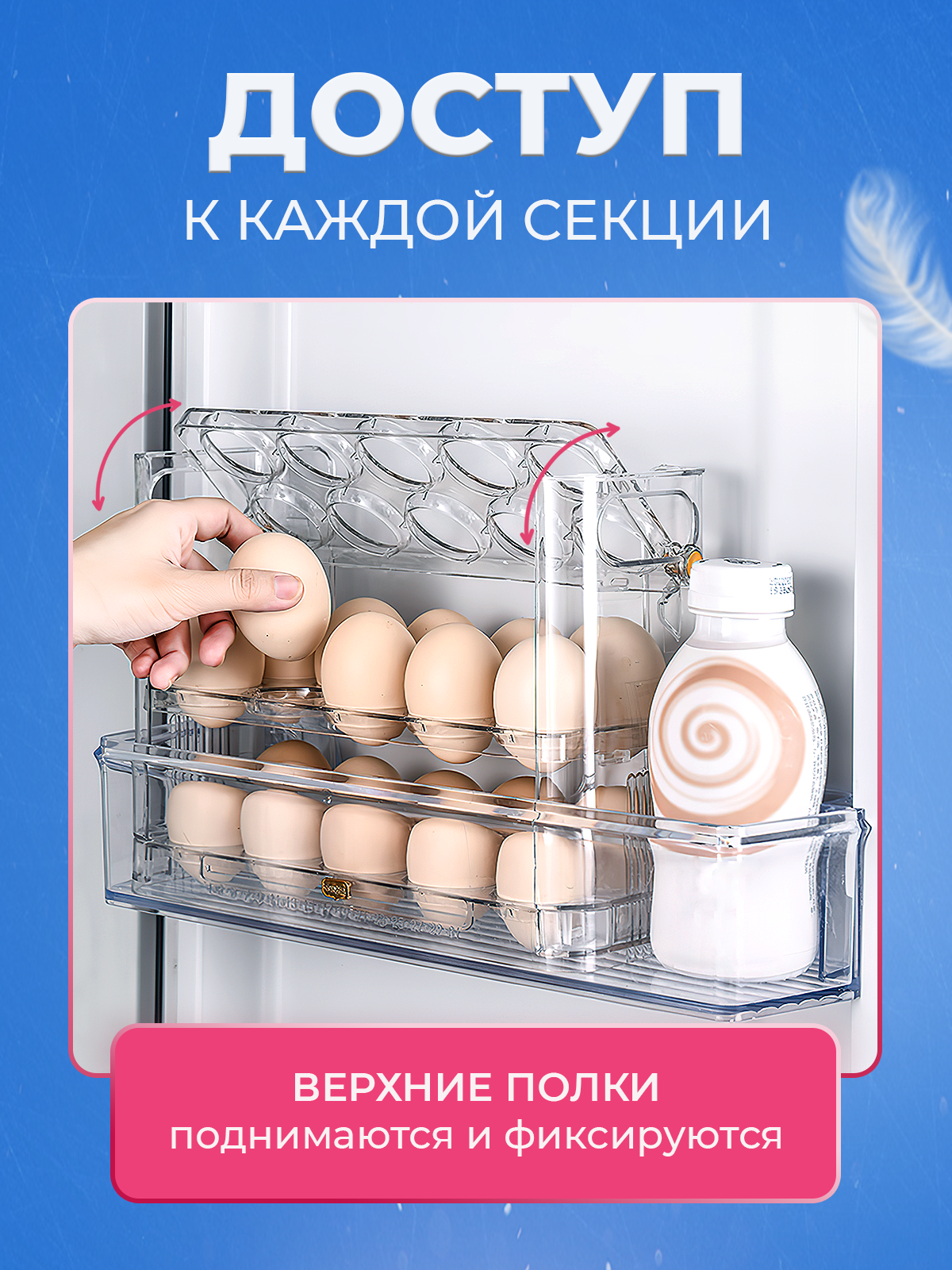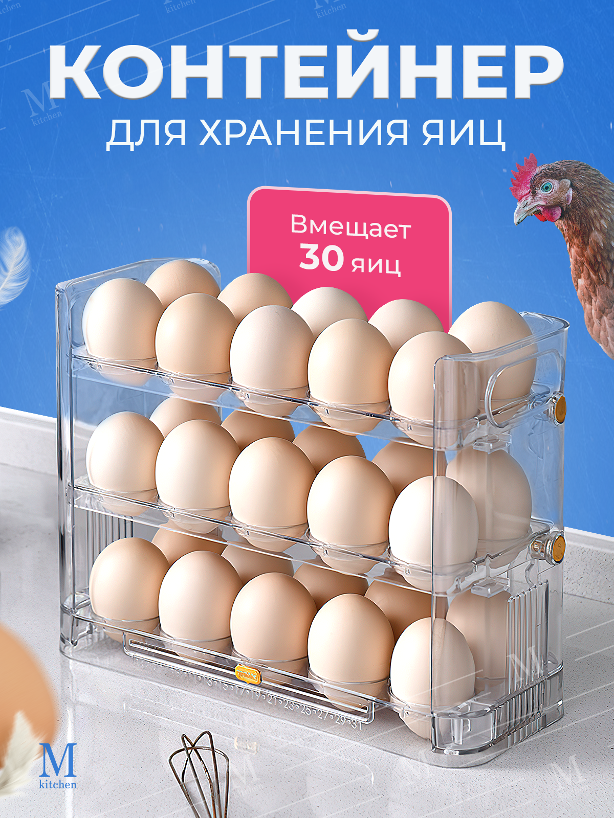 Контейнер для хранения яиц 30 шт в холодильнике Mkitchen. Органайзер подставка для яиц в холодильник