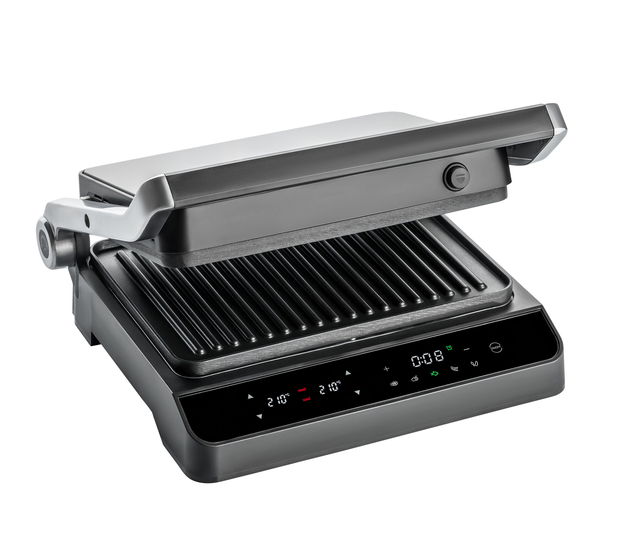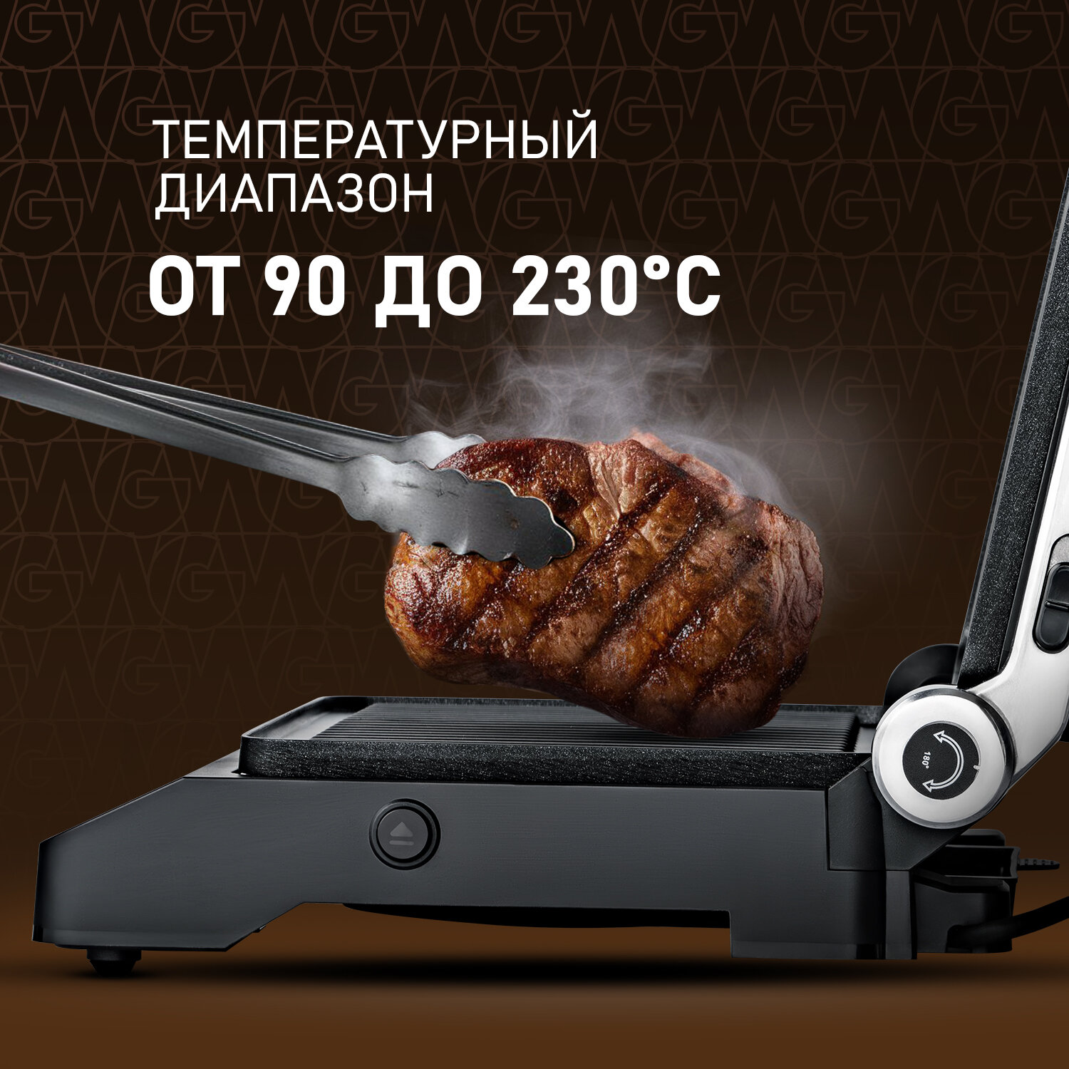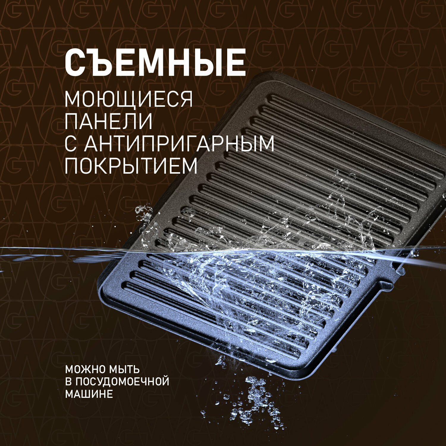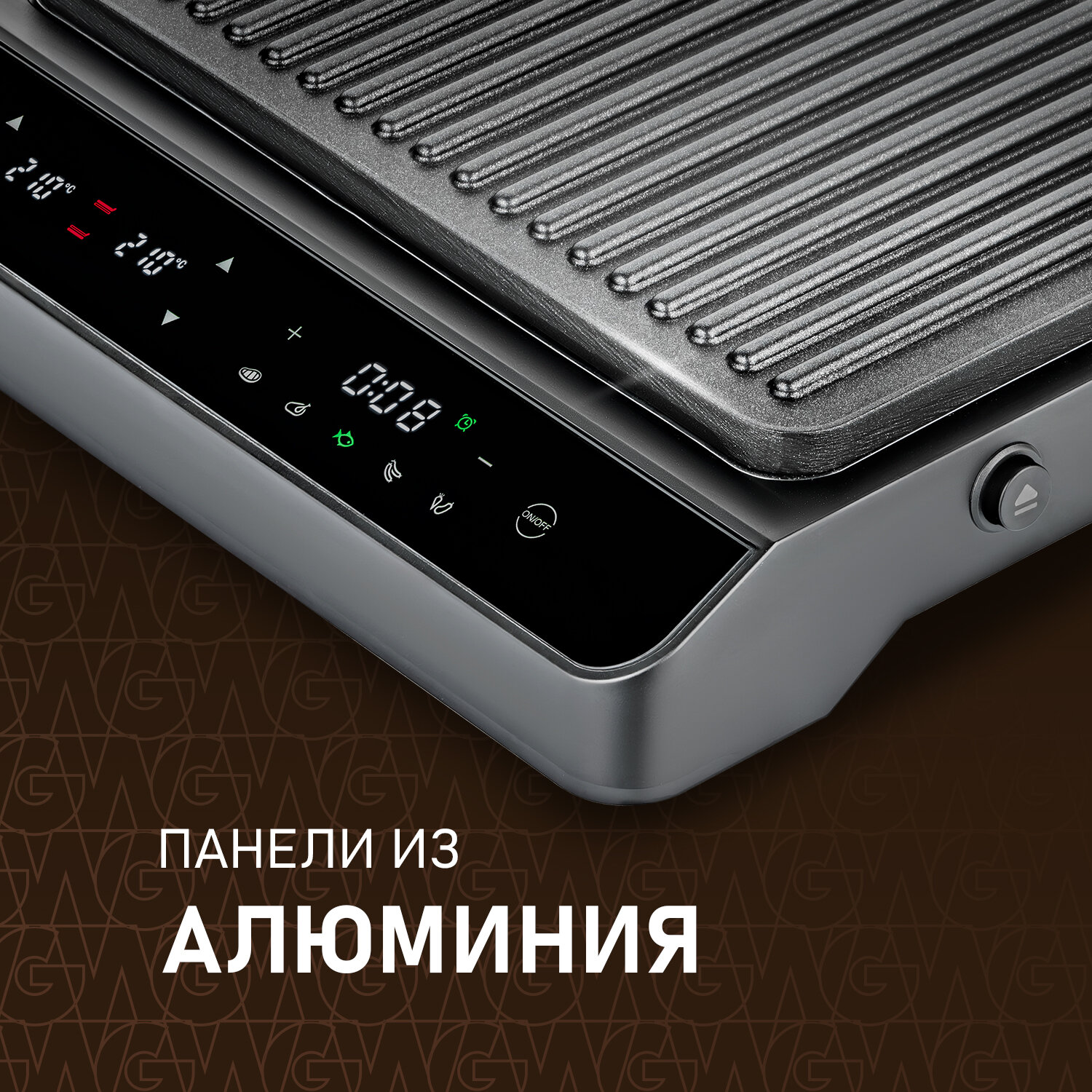 | Дополнительная информация | Съемные моющиеся нагревательные пластины, Мощность работы 1800-2000 Вт, Максимальный угол раскрытия 180 градусов, 5 автоматических режимов работы, Раздельная настройка температуры верхней и нижней пластин, Таймер с автоотключением, Дизайн в черном закаленном стекле |