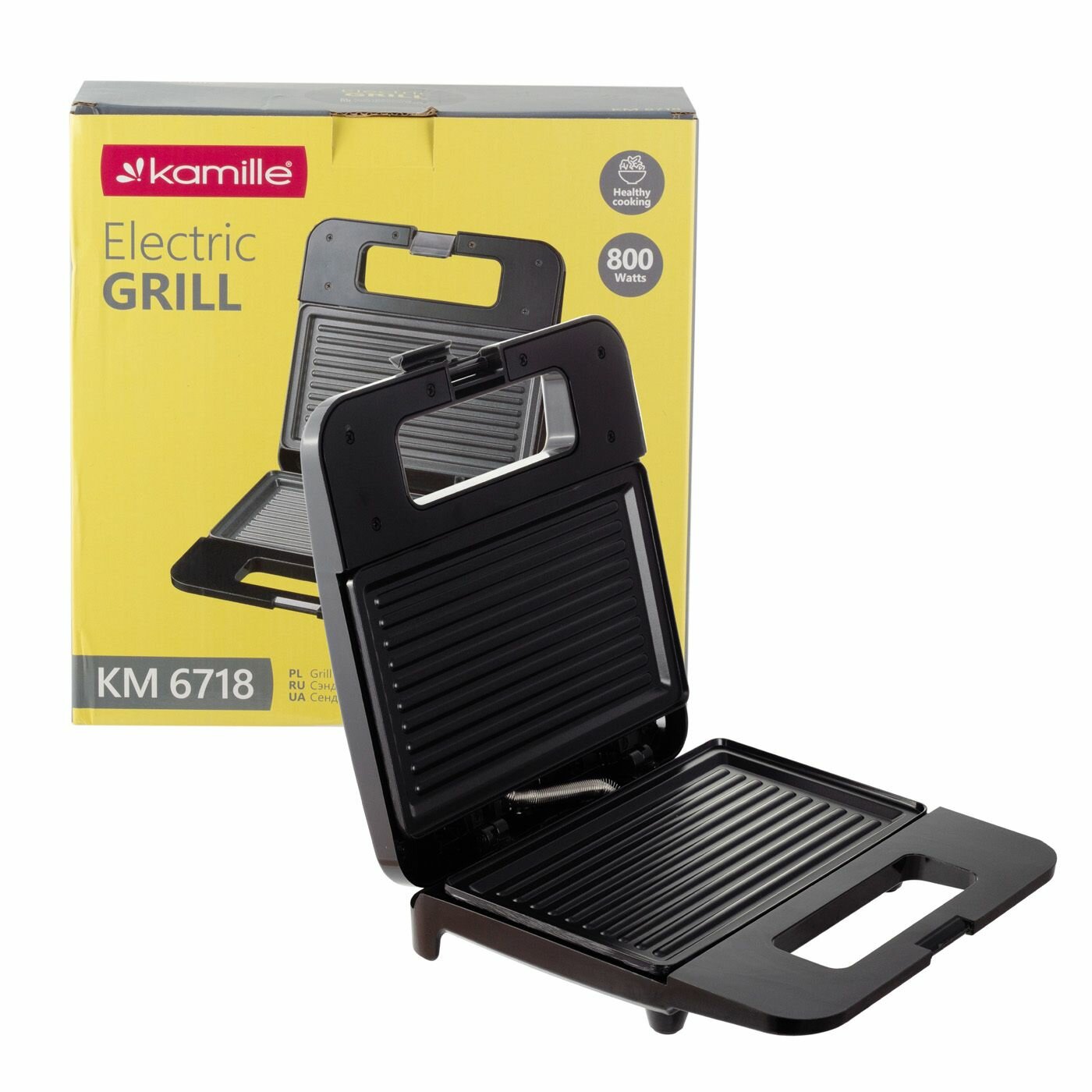 Гриль электрический 800 Вт. Kamille KM 6718 с антипригарным покрытием интересное: