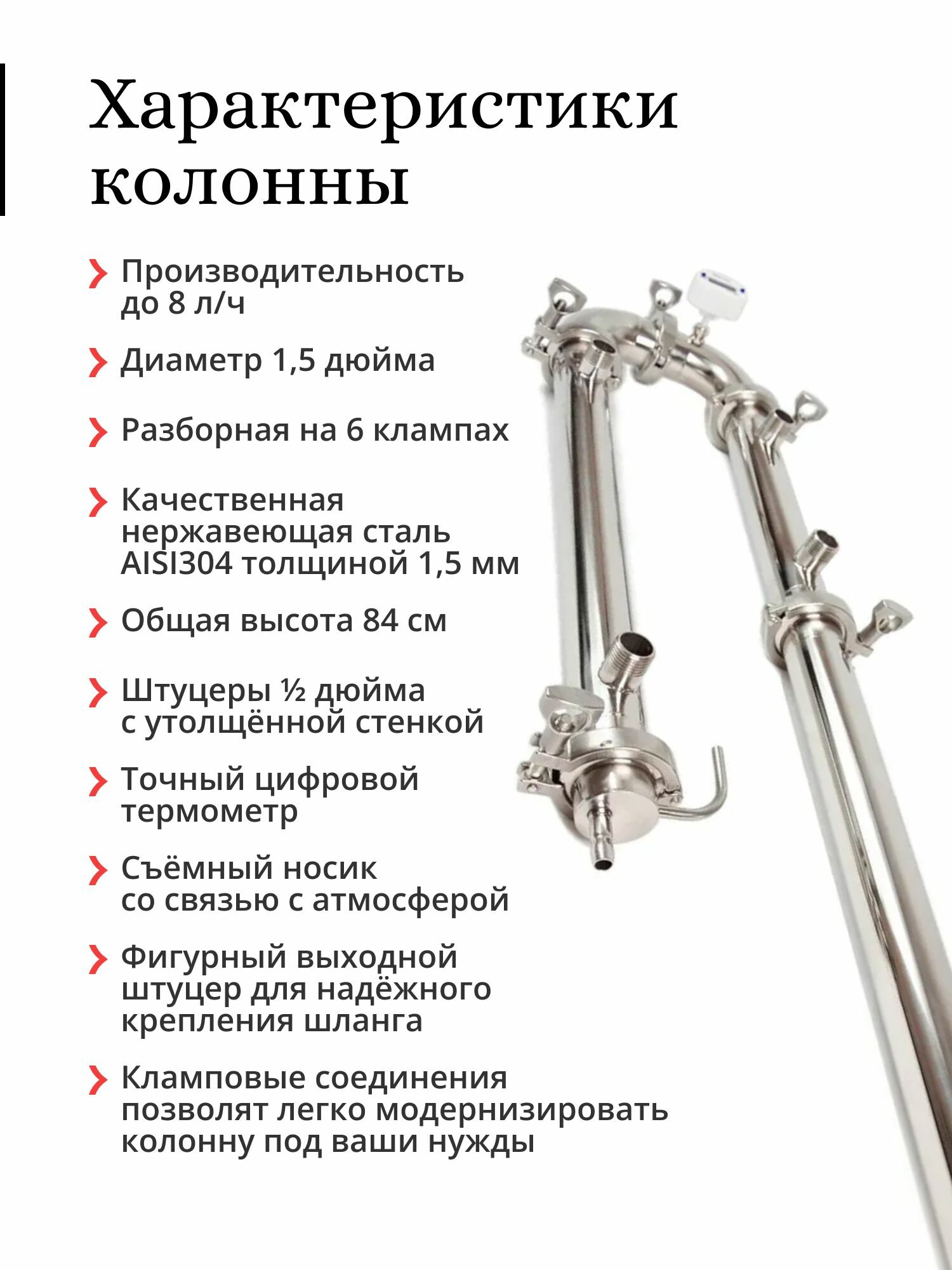 Бражная колонна Mendeleeff Plus 1,5 дюйма, трубки 4x12 мм, высота 84 см интересное: