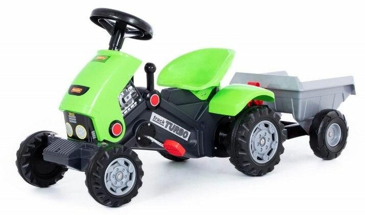 Педальная машина "Turbo-2", пластиковая детская каталка для малышей с полуприцепом, цвет зелёный интересное: