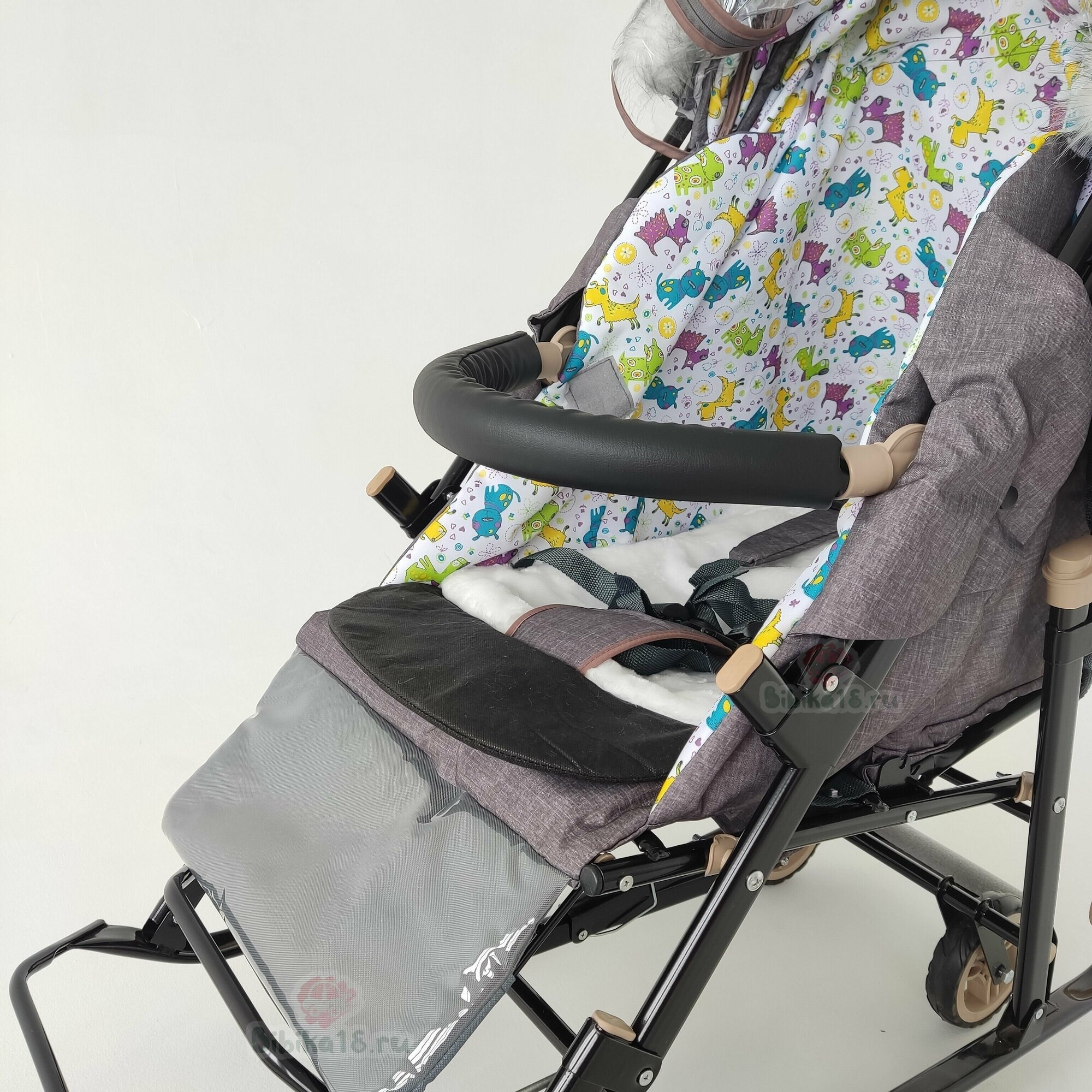 Санки коляска Galaxy Glory Gloss с перекидной ручкой в максимальной комплектации. Цвет серо-коричневый лен со светоотражающей тканью. интересное: