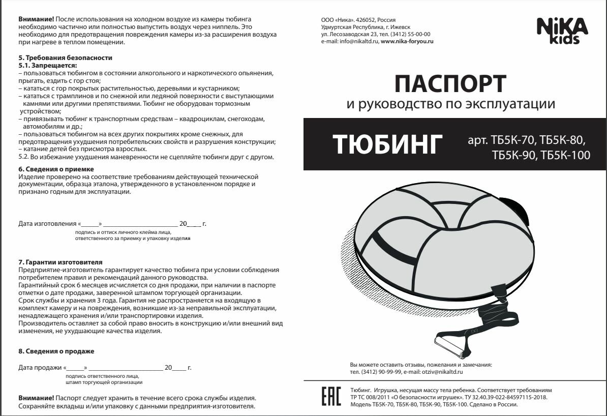 "Тюбинг Ника" принтованный, диаметр 100см, нагрузка до 100кг, ватрушка