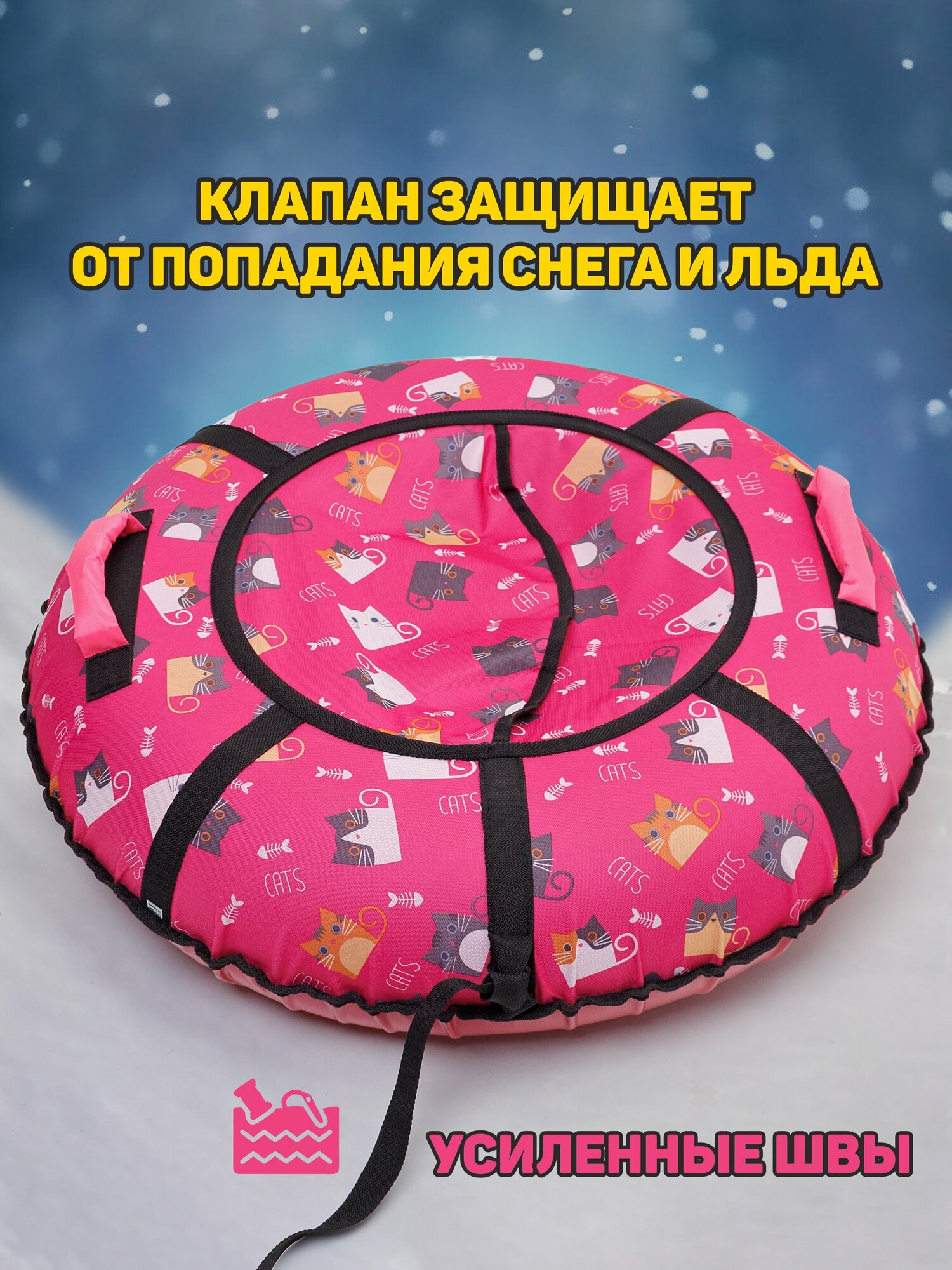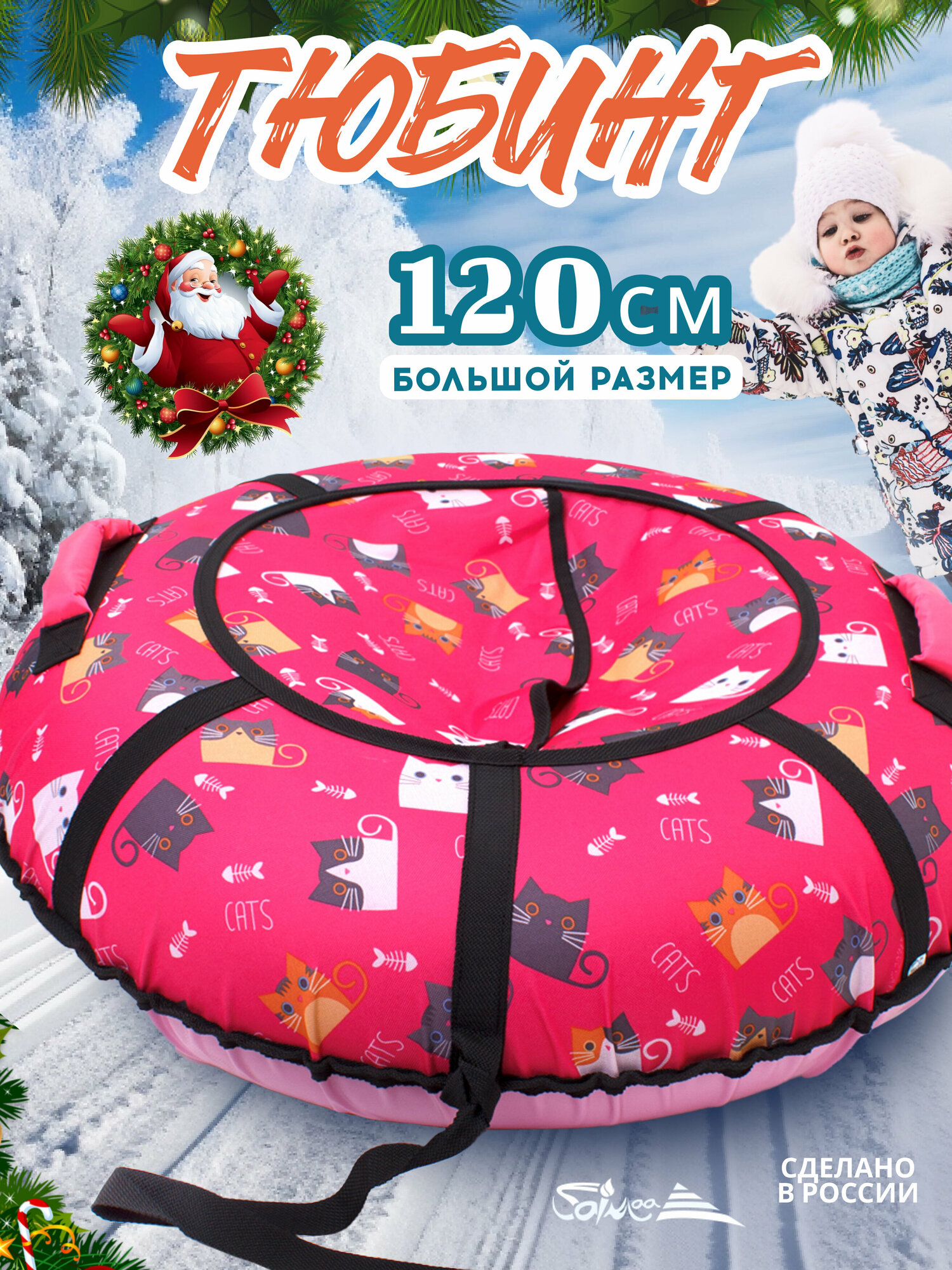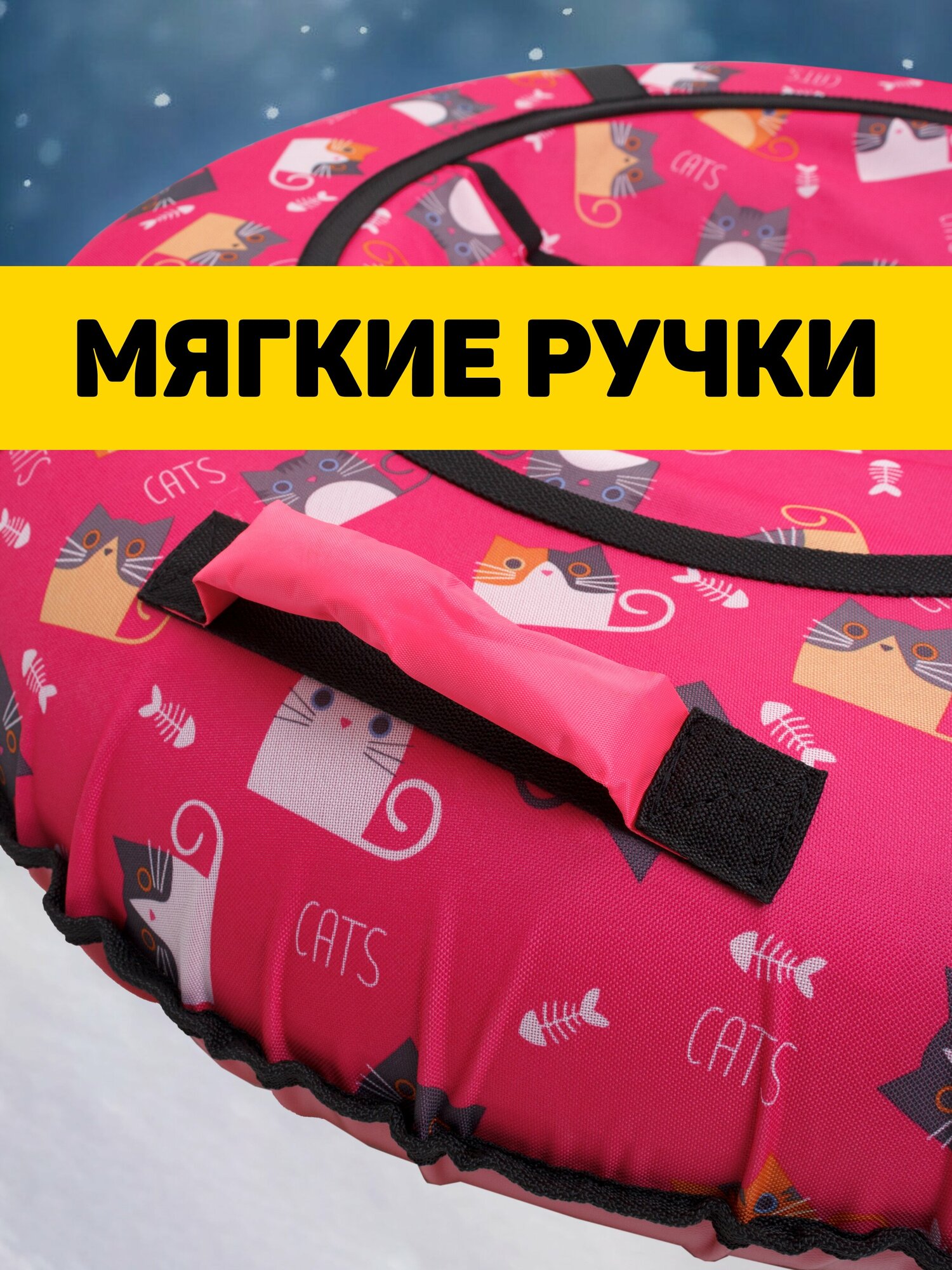 Купить Ватрушка тюбинг плюшка для катания Saimaa "Кошки" 120 см с мягкими ручками