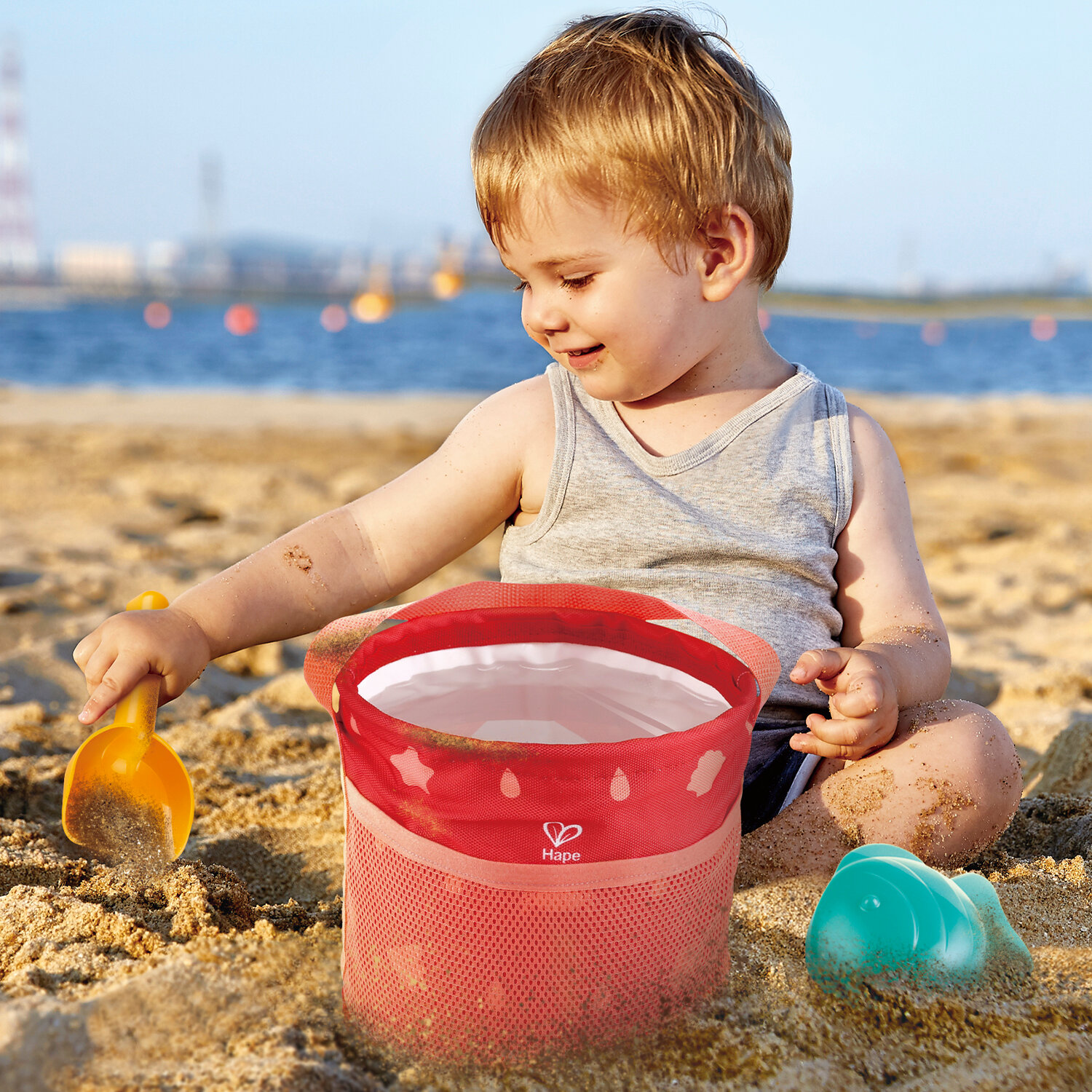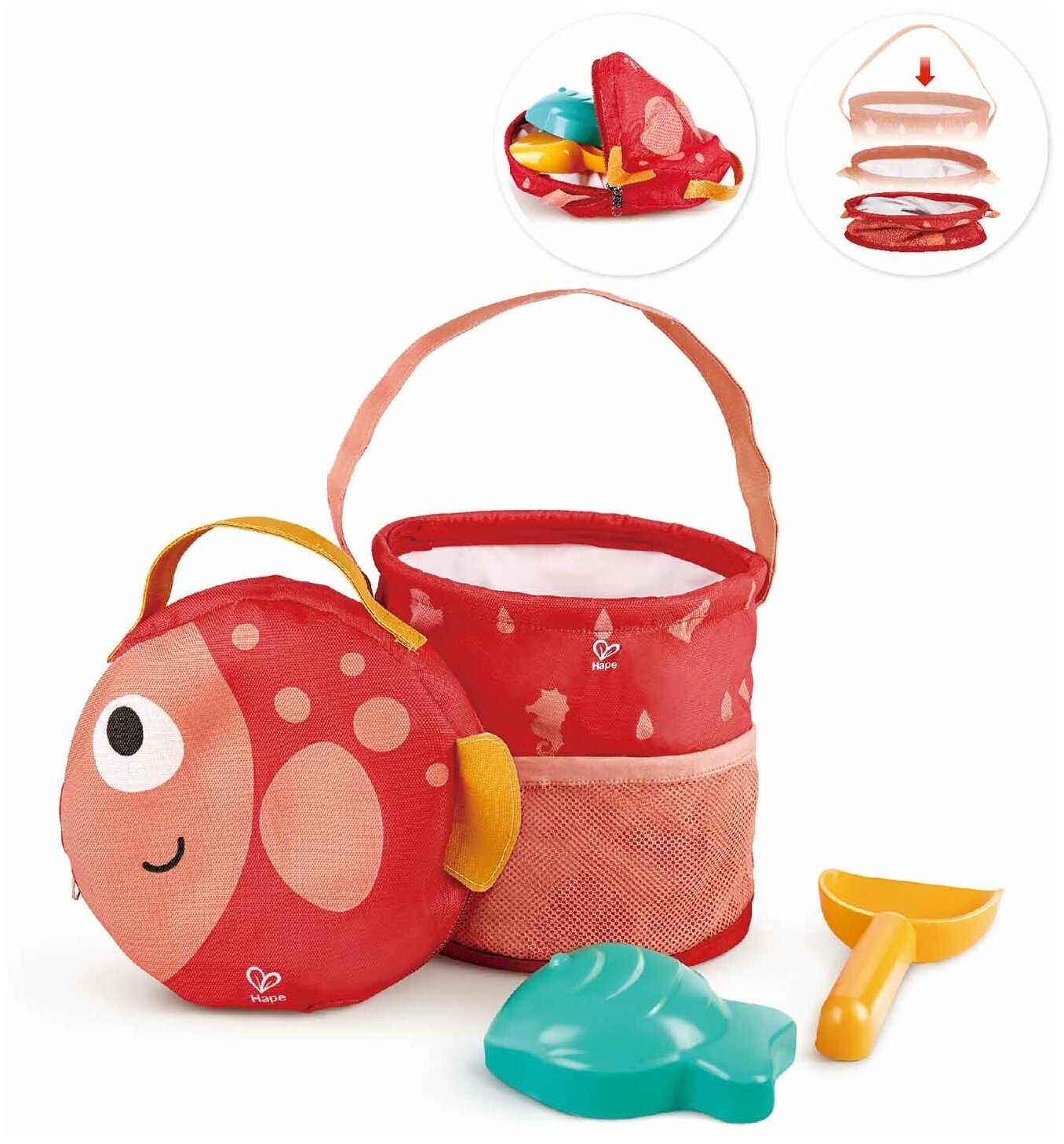 Купить Складное ведерко - сумочка для пляжа Hape "Рыбка", с лопаткой и формочкой E4093_HP