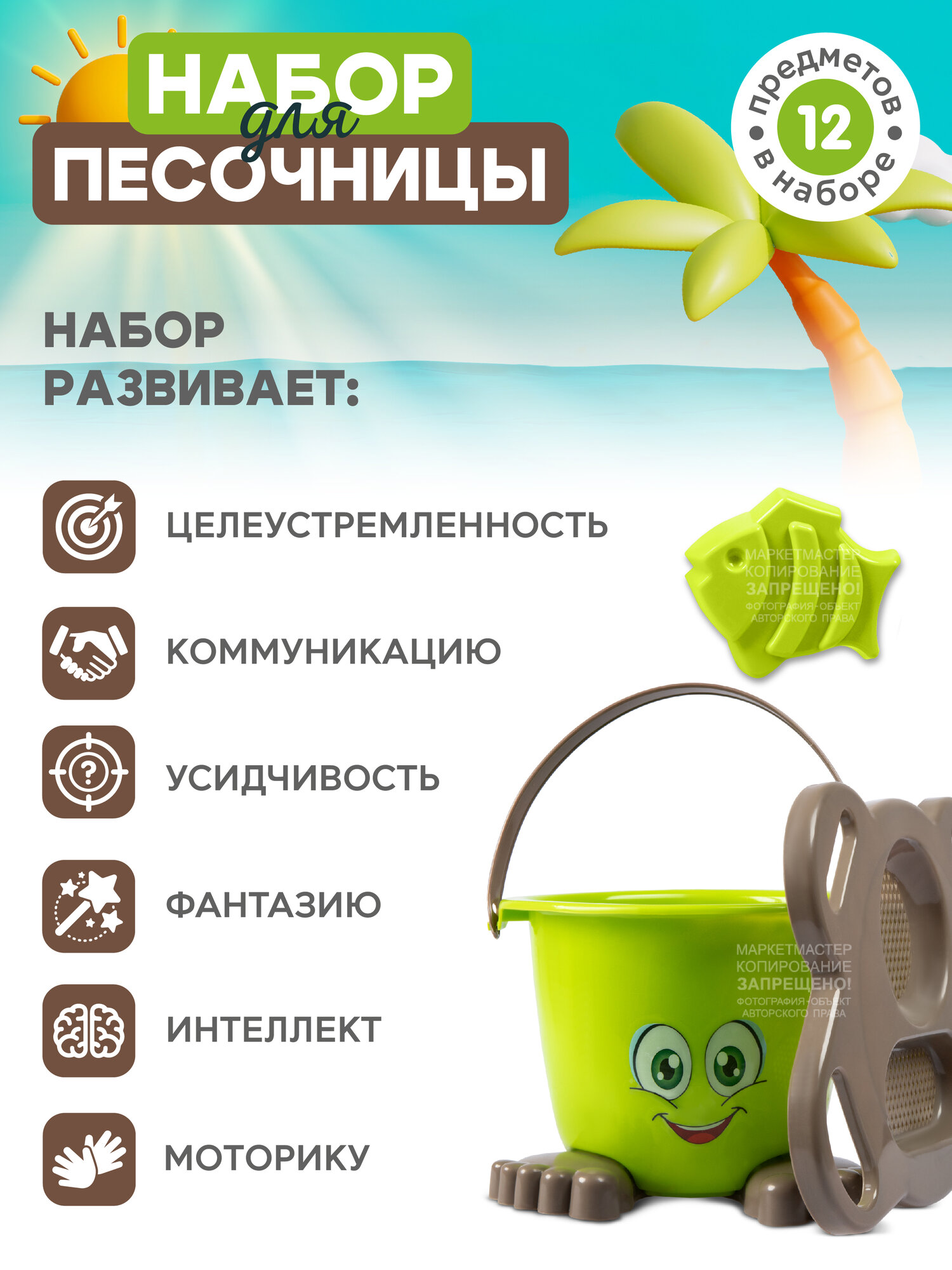 Песочный набор "Человечек" ТМ Джамбо Тойз, ведёрко с крышкой, лопатка, грабли, воронка, сито, формочки, JB5300631