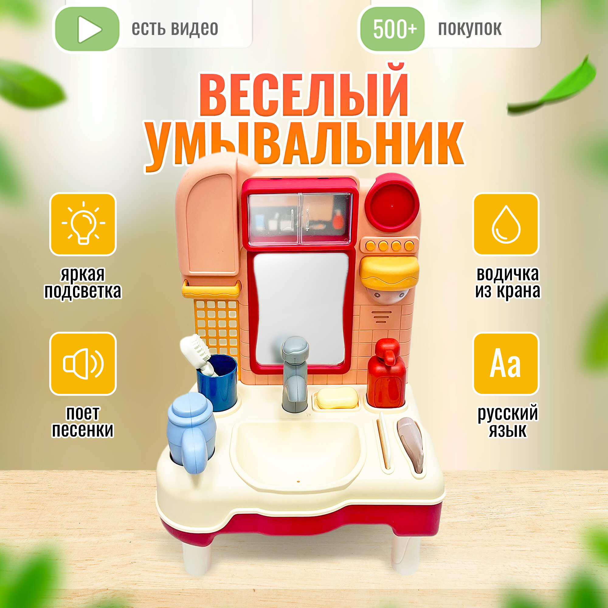 Игровой набор Умывальник SHARKTOYS, мебель для кукол ванная, кукольная игрушечная мебель, свет, звук, песни, течет вода, розовый